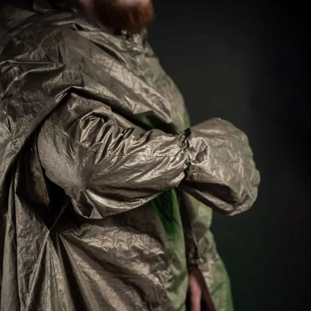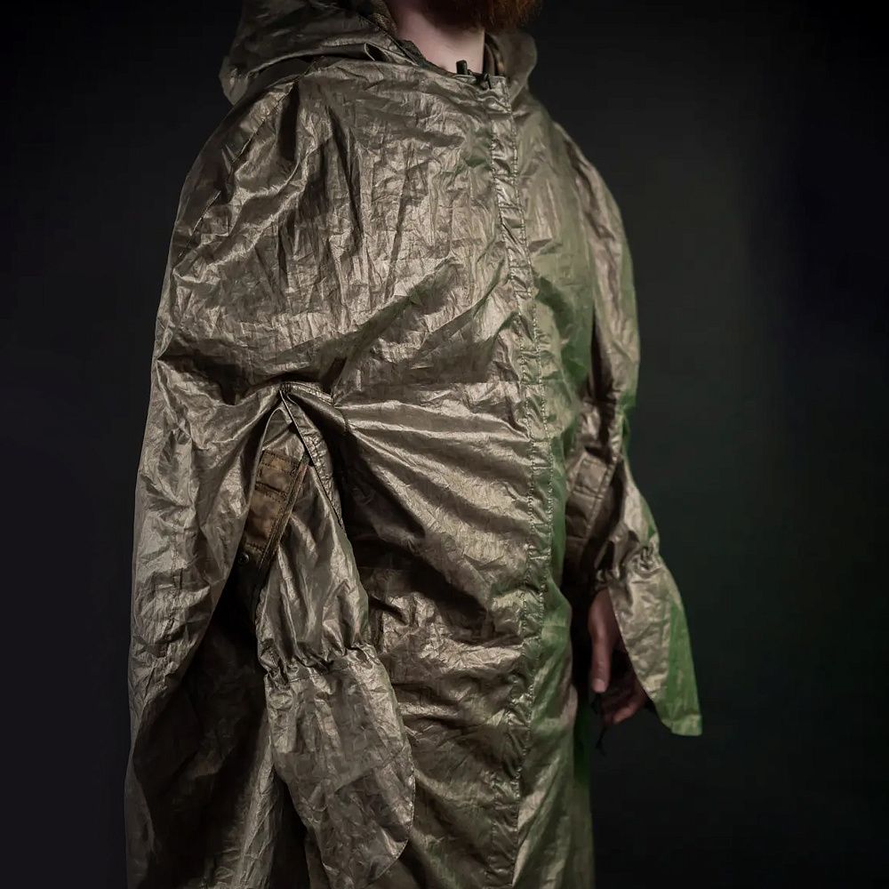 Вільний крій та легка вага. Великий об’єм пончо дає змогу надягти під нього бронежилет та рюкзак. При цьому завдяки тонкій структурі та легкій вазі воно не сковує рухів.