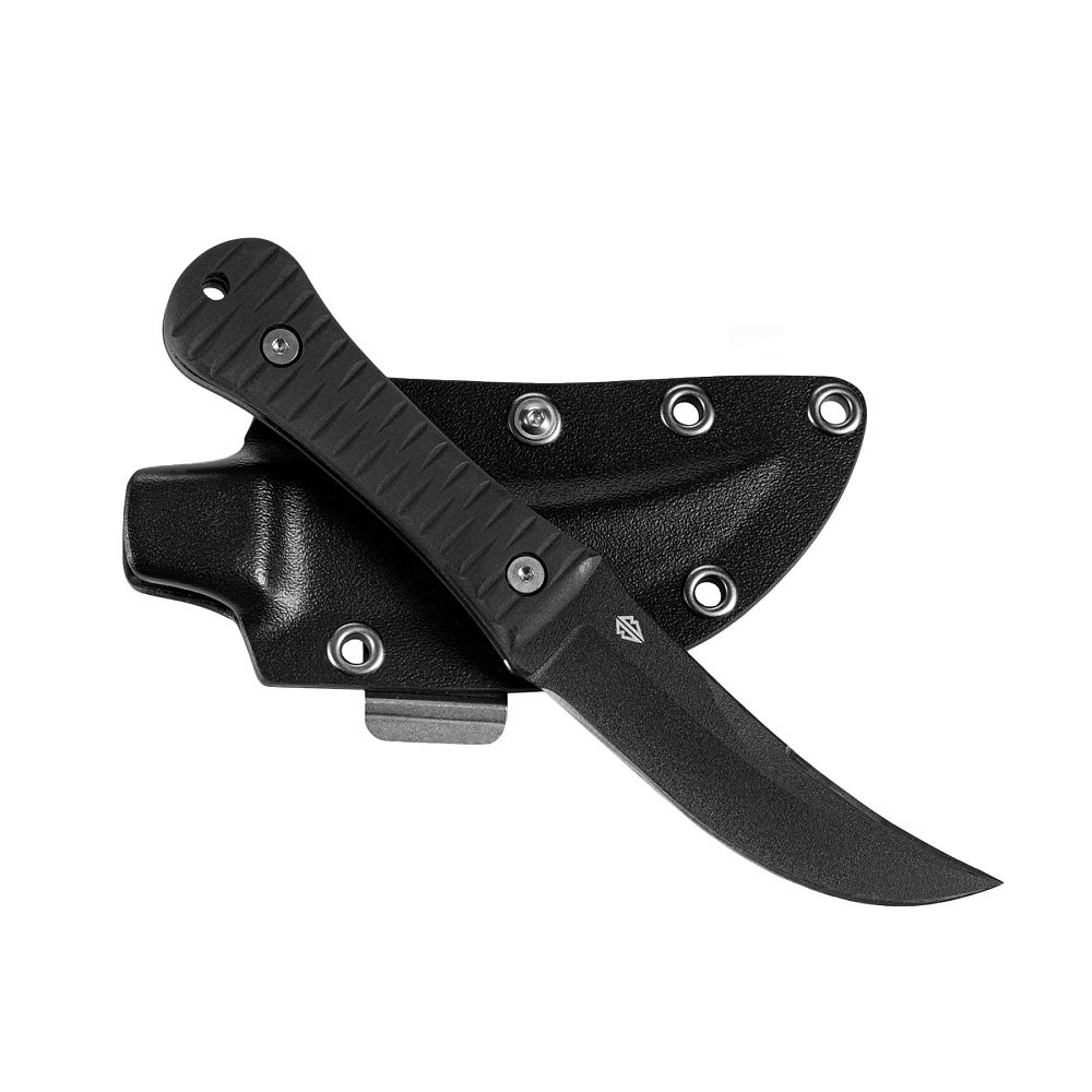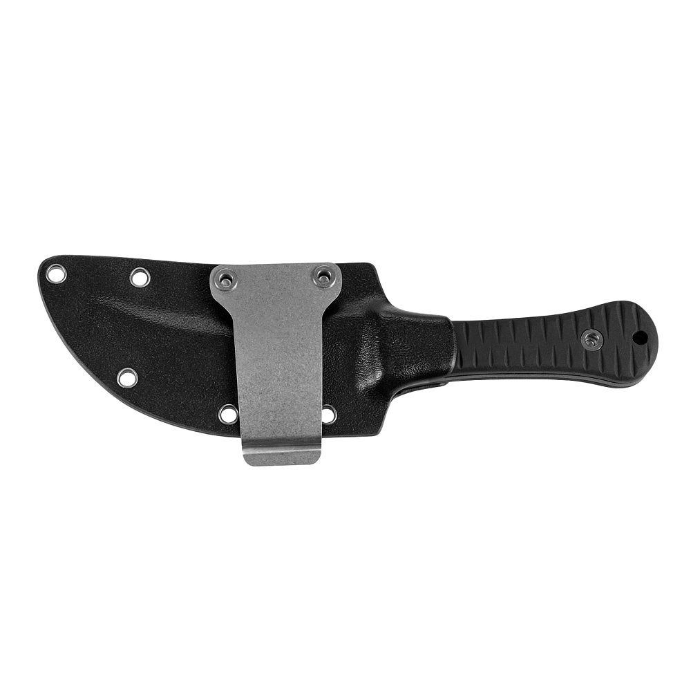 Пластиковий чохол зі сталевою кліпсою дозволяє зручно носити ніж на поясі або на будь-якому іншому спорядженні.