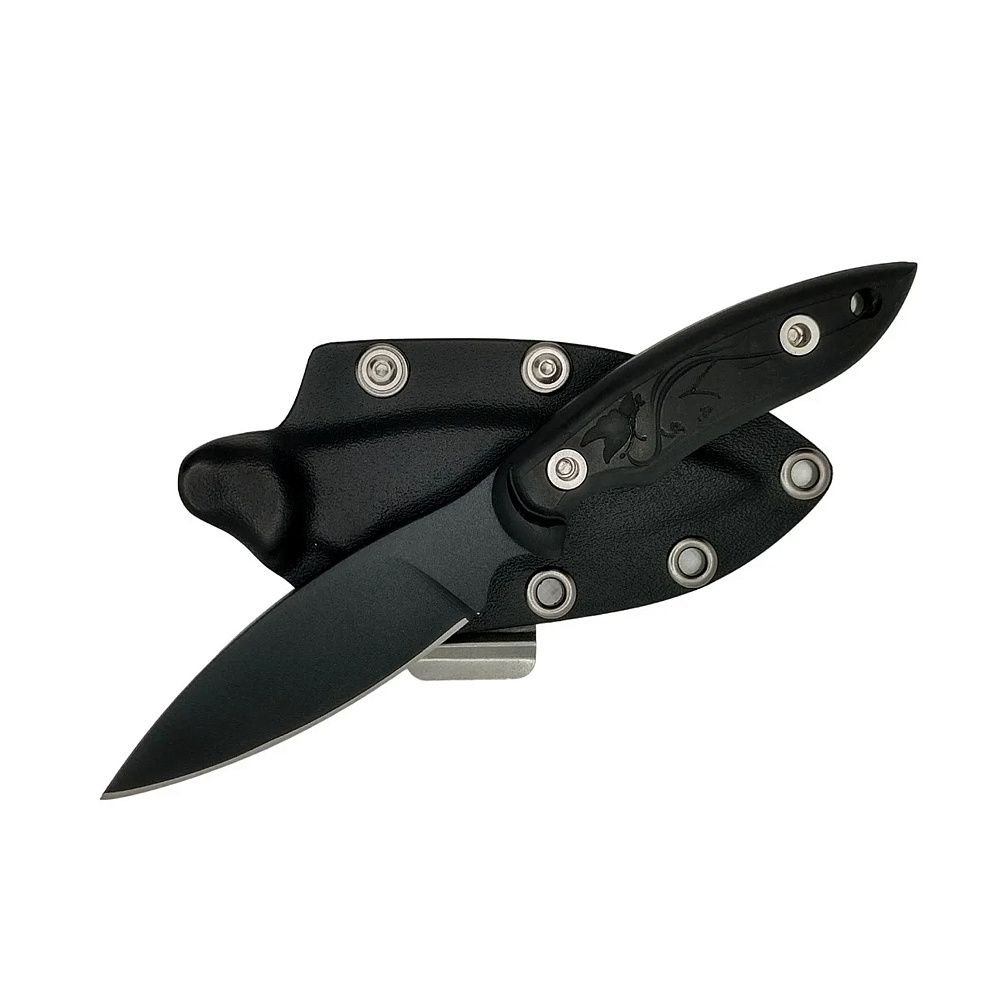Чорне покриття та сучасний дизайн роблять ножик практичним і естетично привабливим. На руків’ї ножа нанесено зображення жіночого профілю та метелика. Ми обрали цей образ як символ внутрішньої свободи та природної сили жінки, яка не втрачає своєї краси навіть у найважчих умовах.