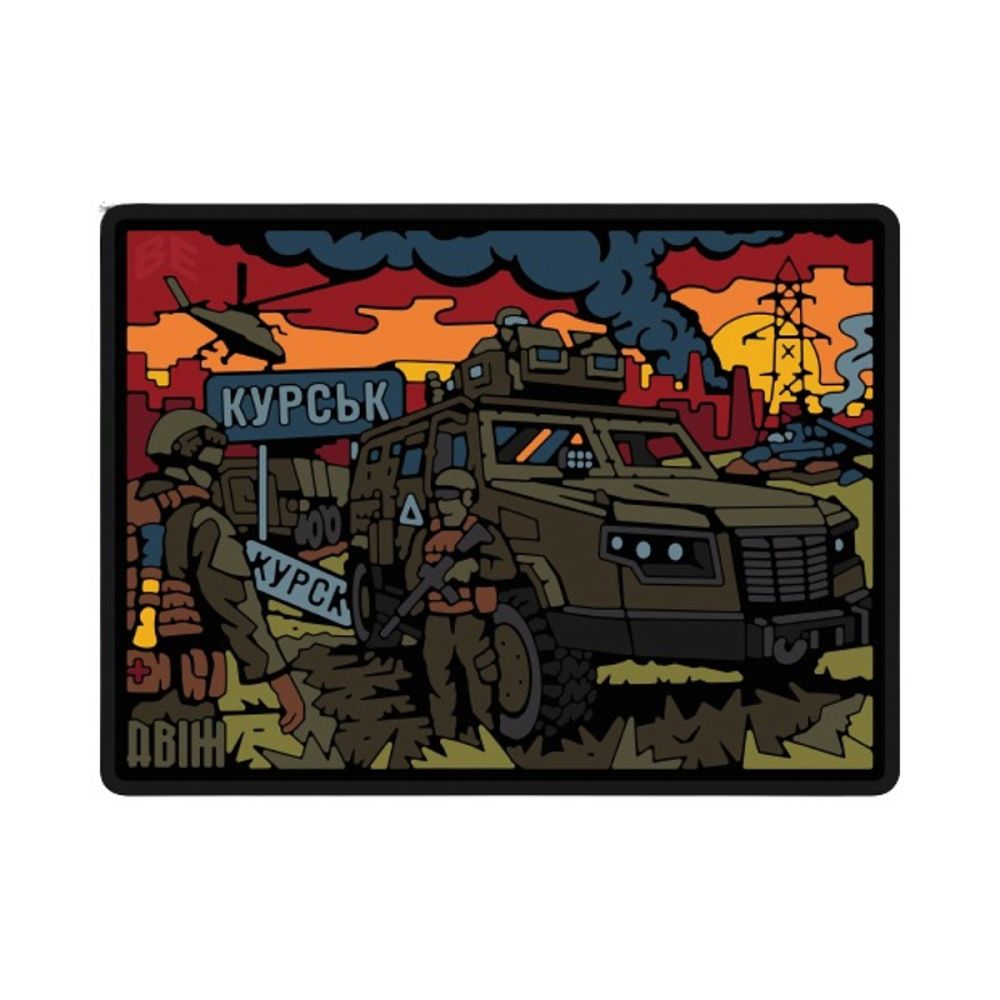 ПВХ Патч "ДВІЖ - Курськ" від Brand Element присвячений українським військовим, які в режимі абсолютної тиші здійснили неймовірну спецоперацію та перемістили фронт до території Росії. Патч відображає рішучість та відвагу захисників, які вступають у запеклі бої на території Курської області - ціллю якої є звільнення самого міста Курськ, на шляху знищуючи ворога та завдаючи ударів по важливих стратегічних об'єктах.