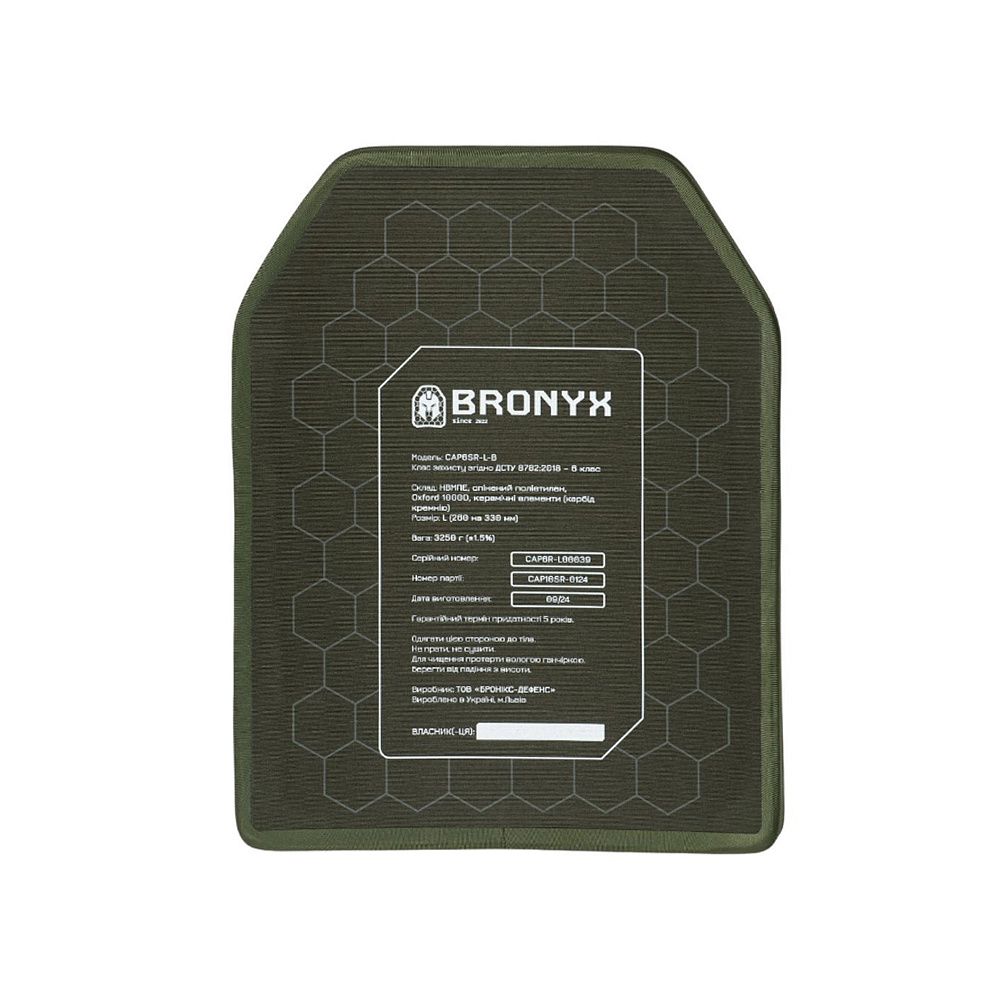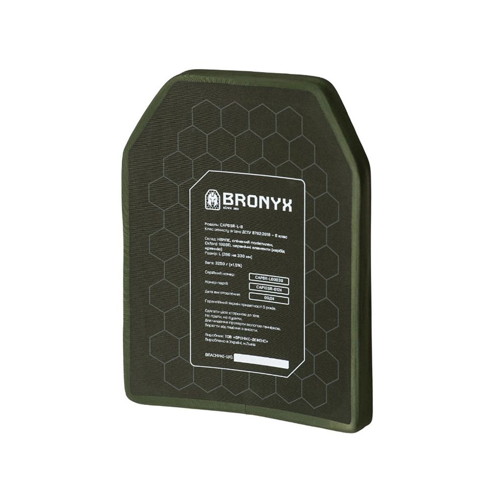 BRONYX БРОНЕПЛИТА 6-ГО КЛАСУ РОЗМІР L – бронеплита від українського виробника професійного бронезахисту.