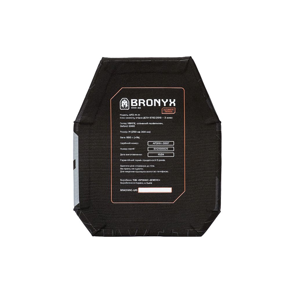 BRONYX БРОНЕПЛИТА ULTIMATE 3-ГО КЛАСУ РОЗМІР М – бронеплита від українського виробника професійного бронезахисту.