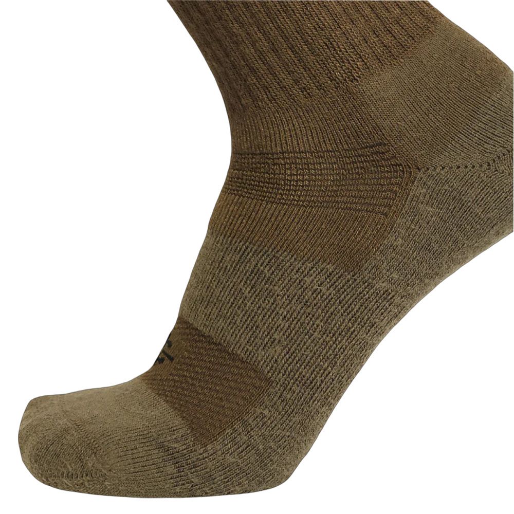 Шкарпетки виготовлені з високоякісного матеріалу (45% вогнетривкий акрил, 28% вовна мериносів, 19% нейлон, 6% лайкра® спандекс та 2% срібна підкладка). Вогнетривкий акрил, який складає найбільшу відсоткову частку в складі тканини, чудово поглинає вологу, допомагає запобігти поширенню інфекцій, а також зменшує ризик отримання опіків.