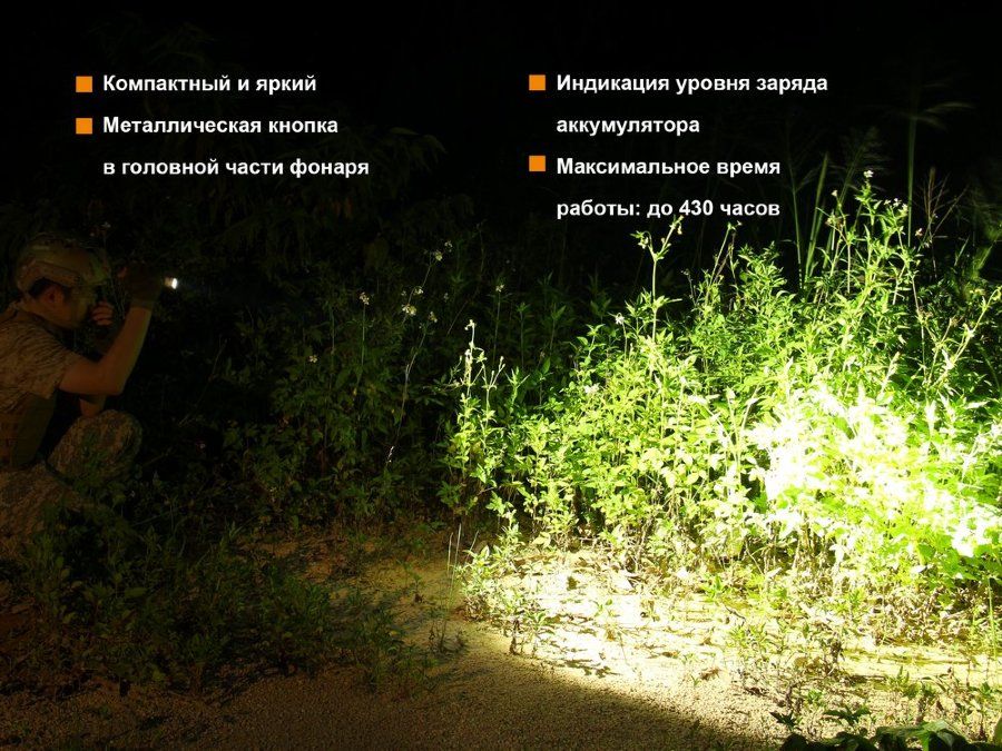 | Комплектация | Фонарь, чехол, ремешок на руку, 2 уплотнительных кольца, запасная резиновая накладка на кнопку, инструкция, гарантия |