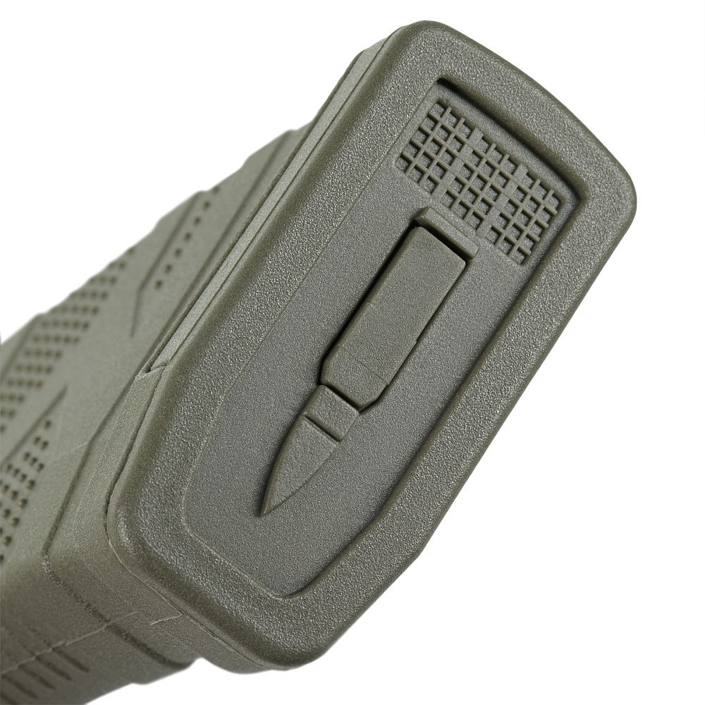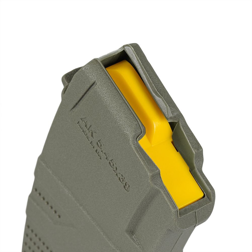 Корпус магазина виконано із сучасних матеріалів на основі склонаповненого поліаміду або полікарбонату, які витримують великі навантаження та перепади температур, стійкі до сонячного ультрафіолету й агресивних середовищ. Яскравий жовтий подавач допомагає легко визначати наявність боєприпасів у магазині. Пружина стійка до тривалих стискань, тож магазини можна досить довго тримати повністю спорядженими. Магазин сумісний зі стандартними планками швидкого заряджання, що забезпечує зручність використання.