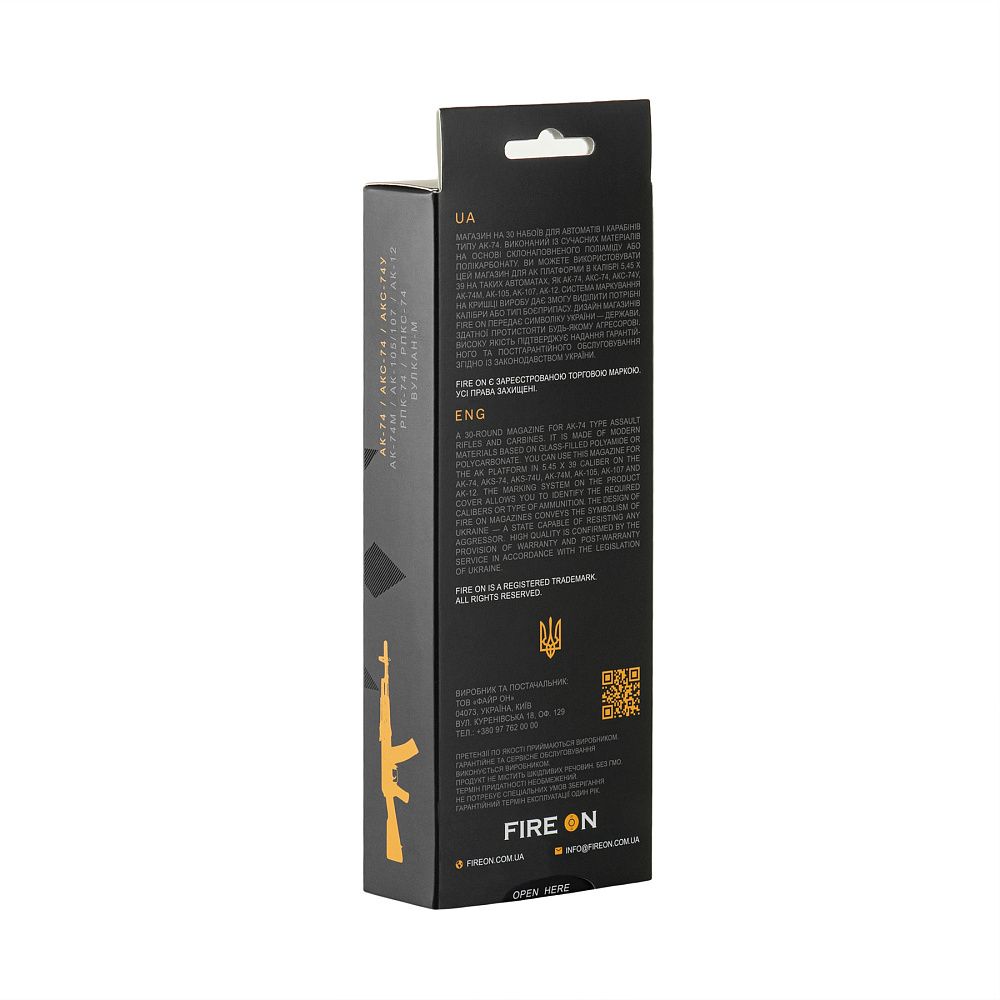 Fire On магазин АК 5,45 – це надзвичайно надійний та високоякісний магазин від українського виробника "Fireon". Магазин є мультикаліберним та підходить для використання з автоматами АК-74, АКС-74, РПК-74. Зауважимо, що з АКС-74У (ксюха) можуть виникнути певні проблеми з сумісністю.