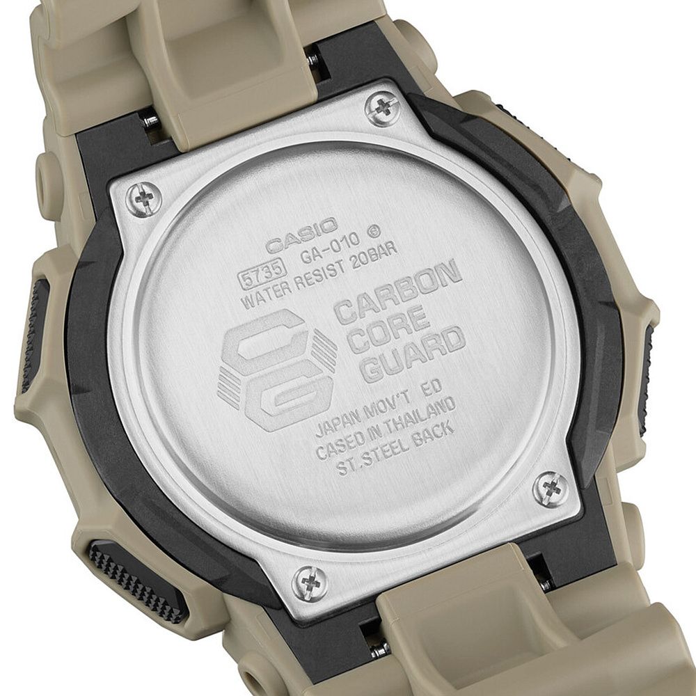 Годинник Casio G-SHOCK Classic GA-010-5AER - це протиударна колекція японського бренду, відома в кожному куточку нашої планети. Ще нікому з конкуруючих корпорацій не вдалося перевершити її за характеристиками та функціоналом. Що ж є годинником G-Shock і чому цей бренд має стільки захоплених відгуків? Давайте вирішимо. У далекому, 1983 році думка про те, що наручний годинник може впасти й не розбитися, здавалася нереальною і фантастичною. Саме тоді, через довгий час випробувань, світ побачив перші Casio G-Shock. Багато хто, і до сьогодні сумніваються, що годинник може бути водонепроникний і удароміцний. Тому у мережі постійно з'являються як офіційні відео crash-тестів, так і аматорські випробування. Цей годинник має стрілково-електронний циферблат з індексами та арабськими цифрами та мінеральним склом. Він оснащений кварцовим механізмом і має водонепроникний корпус з полімеру. Годинник постачається з підсвічуванням, що дозволяє користуватися ним у темряві. Діаметр корпусу становить 51.9 мм. Комплектація включає годинник, інструкцію з експлуатації та коробку.