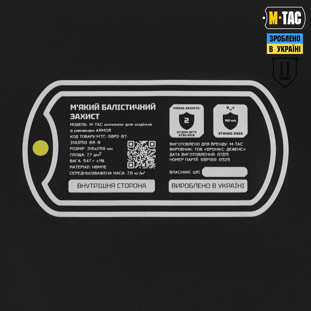M-TAC БАЛІСТИЧНИЙ ПАКЕТ 2 КЛАС (BRONYX) В КИЛИМОК ДЛЯ СИДІННЯ З РЕМЕНЕМ ARMOR розроблений спеціально для M-Tac килимка для сидіння з ременем Armor та призначений для додаткового захисту від рикошетів й уламків.