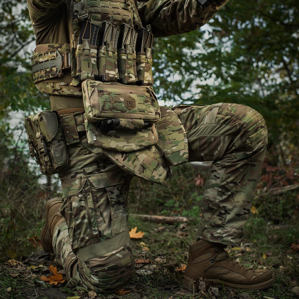 Для збільшення площі протиуламкового захисту, виробник радить комбінувати балістичний захист паху з М-ТАС ЗАХИСТ ЖИВОТА З БАЛІСТИЧНИМ ПАКЕТОМ 1 КЛАС ЗАХИСТУ. Завдяки конструкції, дані виду захисту не будуть конфліктувати між собою, забезпечуючи комфорт при експлуатації та надійний захист від куль та уламків. Захист живота доступний у наступних варіаціях: