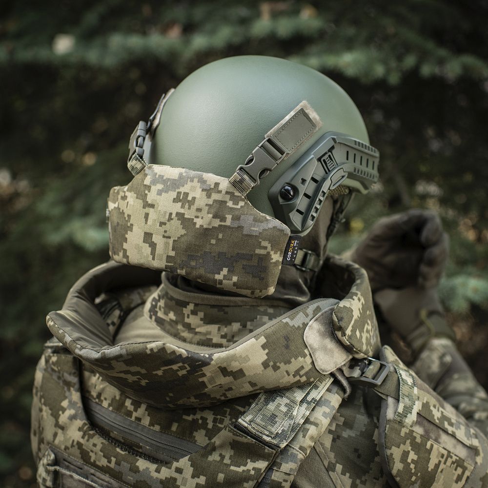 Бренд М-Тас розробив та випустив нову концепцію системи індивідуального захисту бійця - БАЛІСТИЧНИЙ ЗАХИСТ ПОТИЛИЦІ З КРІПЛЕННЯМ НА ШОЛОМ 1 КЛАС ЗАХИСТУ. Виріб являє собою компактний знімний модуль, який забезпечує захист задньої частини шиї (потилиці).