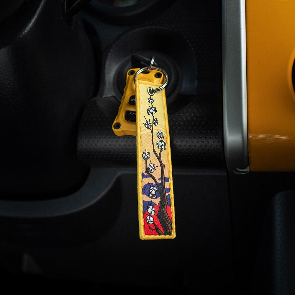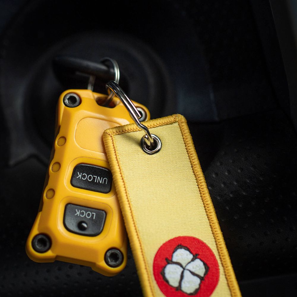 Серед усього розмаїття брелоків культовим став “Remove Before Flight” – елемент, що прийшов до нас з авіації та швидко здобув популярність. Яскраво-червоні стрічки з таким написом використовувалися на літаках як попереджувальні маркери, які необхідно було зняти перед вильотом. Згодом, зменшена версія цієї сигнальної стрічки перетворилася на впізнаваний аксесуар.