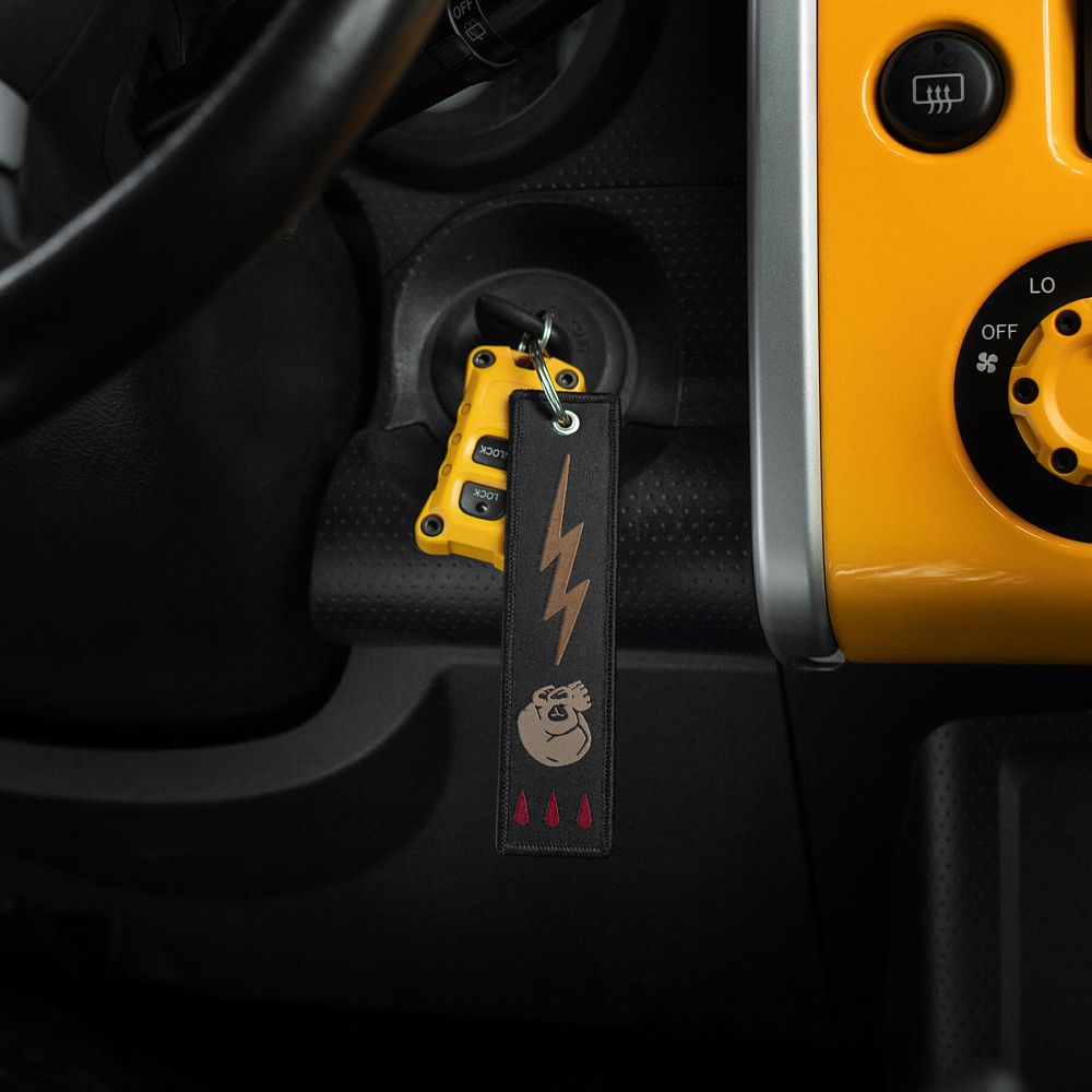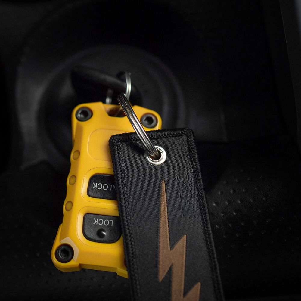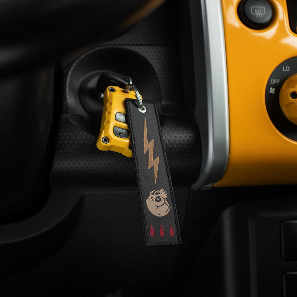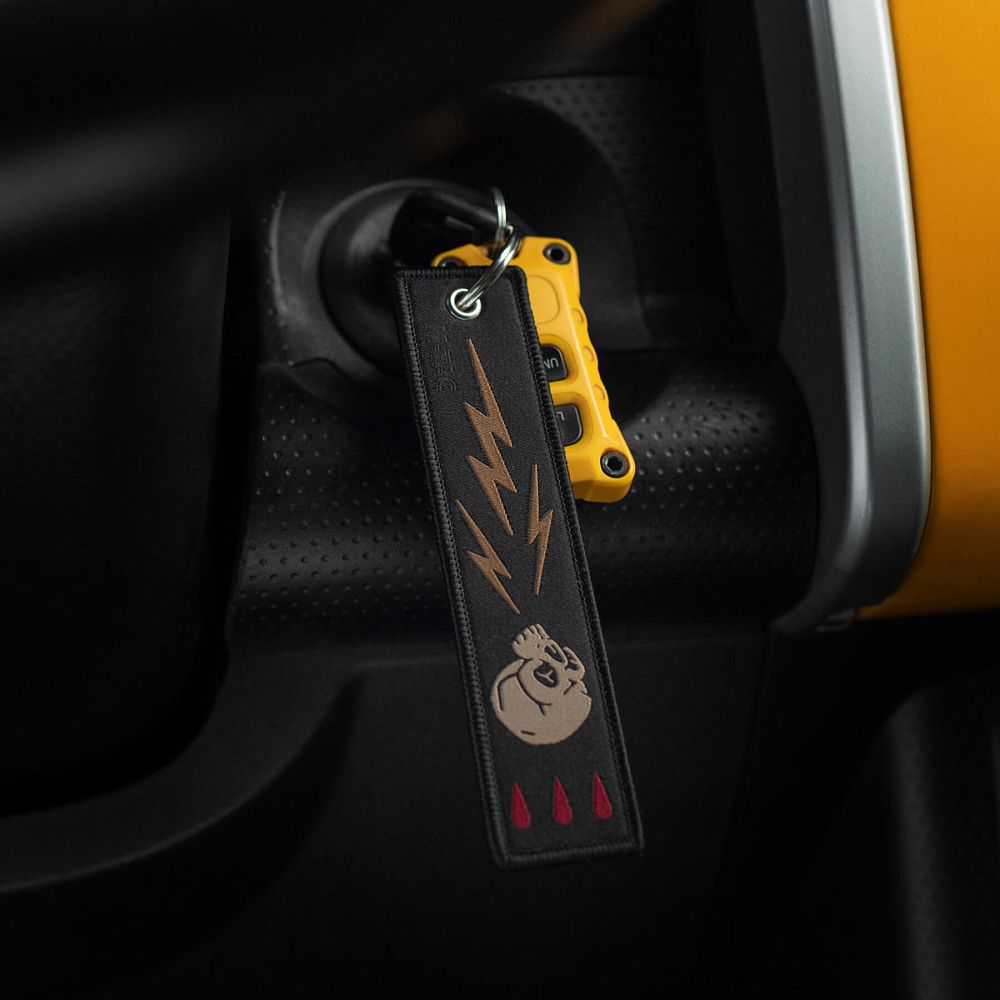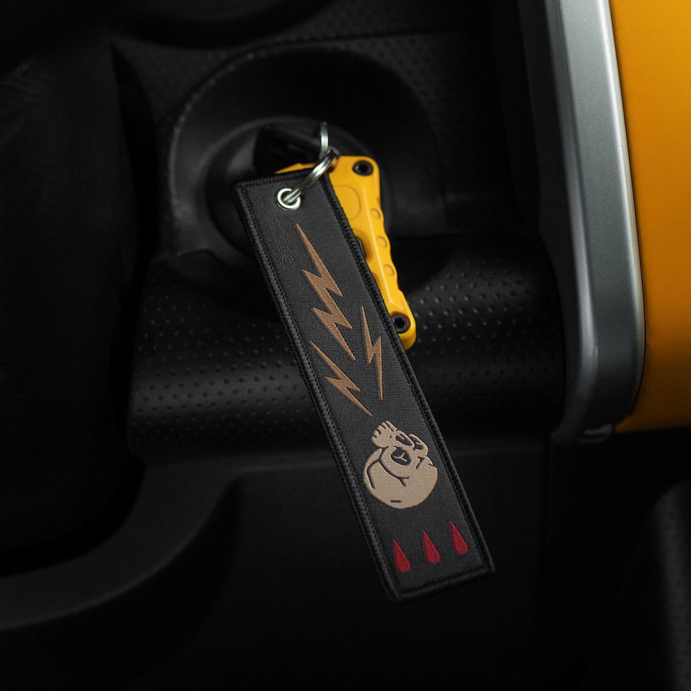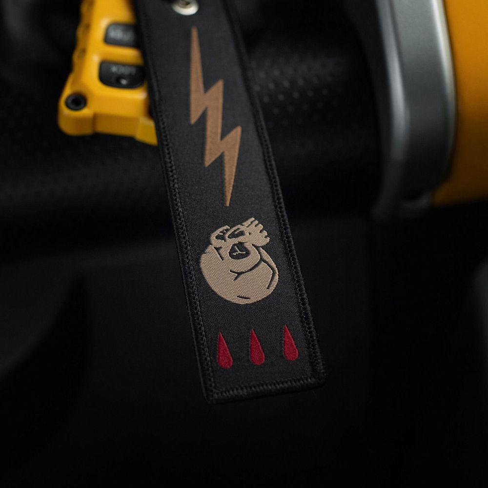 Серед усього розмаїття брелоків культовим став “Remove Before Flight” – елемент, що прийшов до нас з авіації та швидко здобув популярність. Яскраво-червоні стрічки з таким написом використовувалися на літаках як попереджувальні маркери, які необхідно було зняти перед вильотом. Згодом, зменшена версія цієї сигнальної стрічки перетворилася на впізнаваний аксесуар.