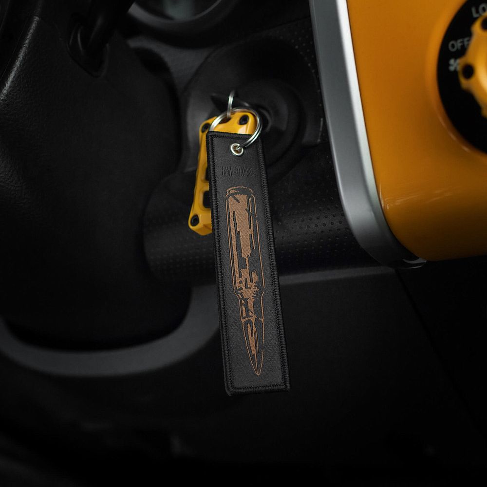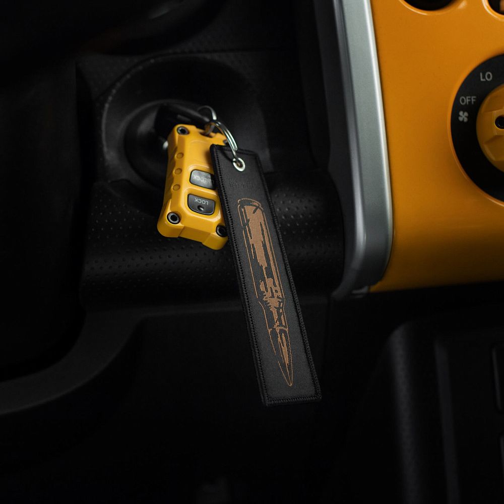 Серед усього розмаїття брелоків культовим став “Remove Before Flight” – елемент, що прийшов до нас з авіації та швидко здобув популярність. Яскраво-червоні стрічки з таким написом використовувалися на літаках як попереджувальні маркери, які необхідно було зняти перед вильотом. Згодом, зменшена версія цієї сигнальної стрічки перетворилася на впізнаваний аксесуар.