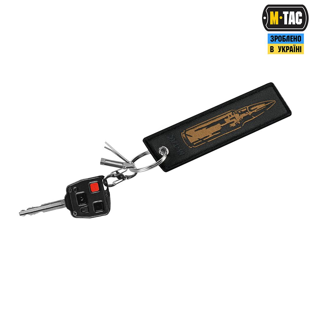 На М-Тас брелоку Набій з обох боків зображена куля – символ готовності до будь-яких викликів. Він зручно кріпиться до ключів, сумки, рюкзака тощо за допомогою металевого кільця.