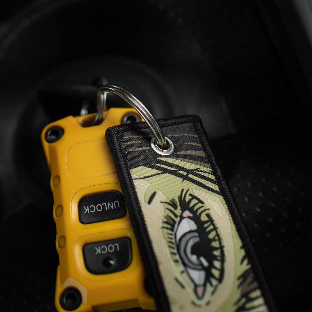 Серед усього розмаїття брелоків культовим став “Remove Before Flight” – елемент, що прийшов до нас з авіації та швидко здобув популярність. Яскраво-червоні стрічки з таким написом використовувалися на літаках як попереджувальні маркери, які необхідно було зняти перед вильотом. Згодом, зменшена версія цієї сигнальної стрічки перетворилася на впізнаваний аксесуар.