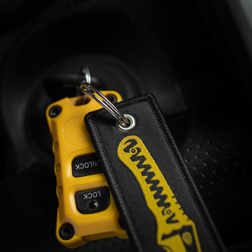 Серед усього розмаїття брелоків культовим став “Remove Before Flight” – елемент, що прийшов до нас з авіації та швидко здобув популярність. Яскраво-червоні стрічки з таким написом використовувалися на літаках як попереджувальні маркери, які необхідно було зняти перед вильотом. Згодом, зменшена версія цієї сигнальної стрічки перетворилася на впізнаваний аксесуар.