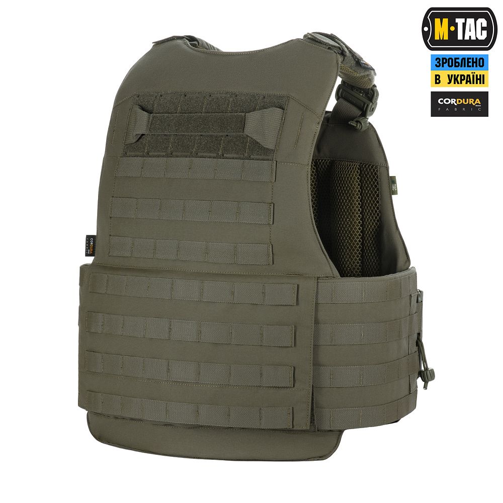 Чохол бронежилета виготовлений з високоякісного матеріалу Cordura 500D – надміцної тканини, стійкої до стирання і високих навантажень. Розширений камербанд з Molle інтерфейсом на 4 стропи при необхідності дозволяє розмістити додаткове спорядження, наприклад, горизонтальні аптечки або утилітарні підсумки.