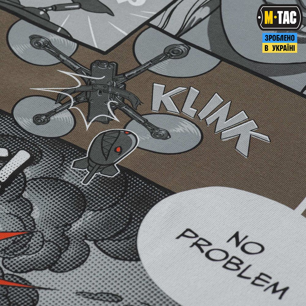 Бренд М-Тас не зупиняється на досягнутому й продовжує серію тематичних футболок, присвячених операторам БПЛА та їх смертоносним дронам. Принт футболки виконаний у вигляді коміксу, що розкриває насичений сюжет та дає волю уяві.