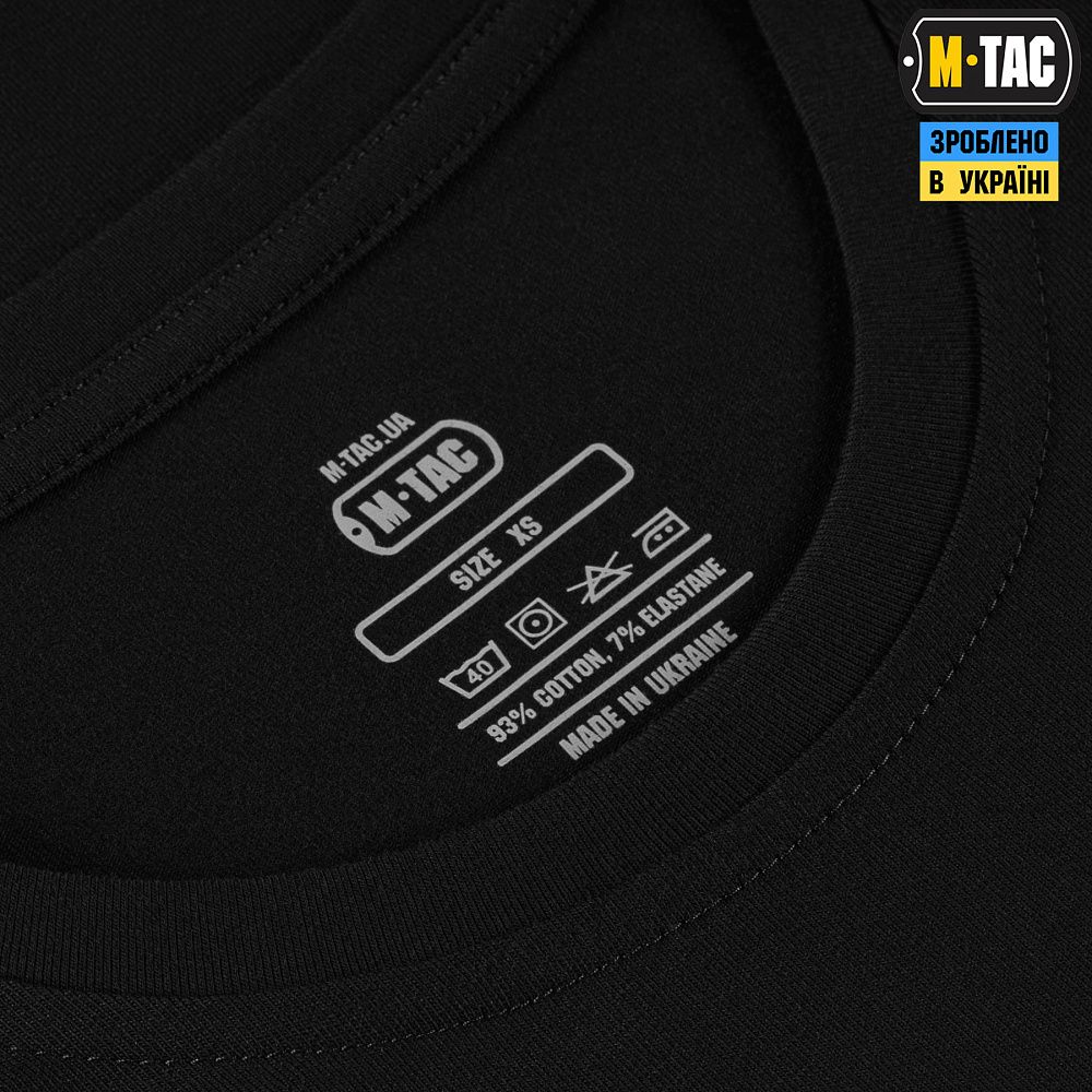 Футболка пошита з якісного матеріалу (97% бавовна, 3% еластан). Зручний крій футболки не обмежує рухи, а плоскі шви не натирають та забезпечують комфорт під час використання.
