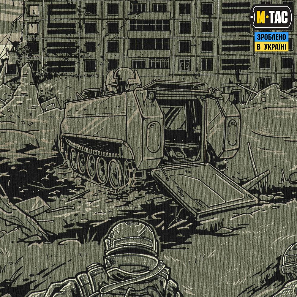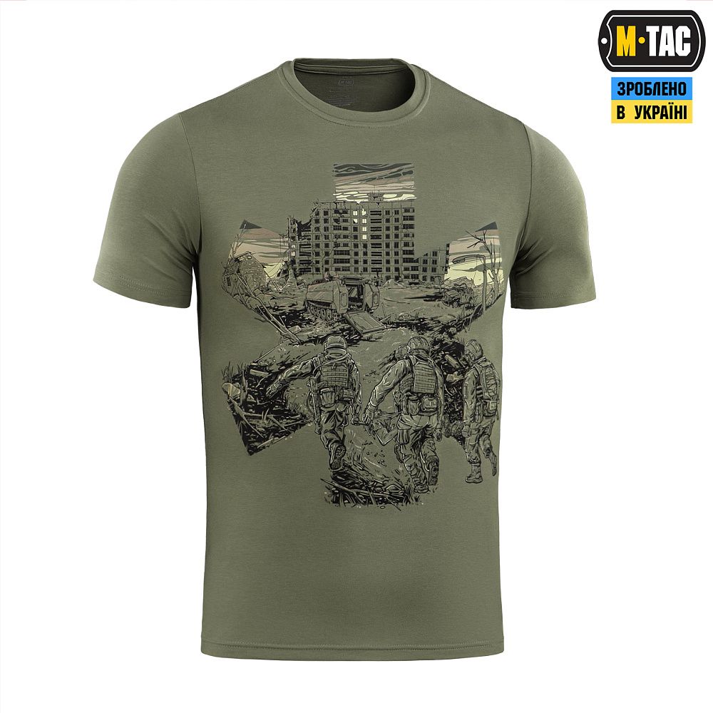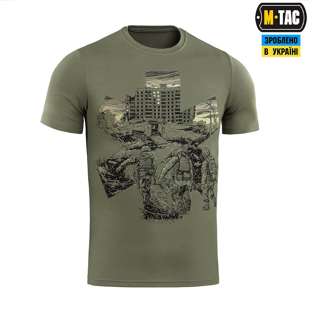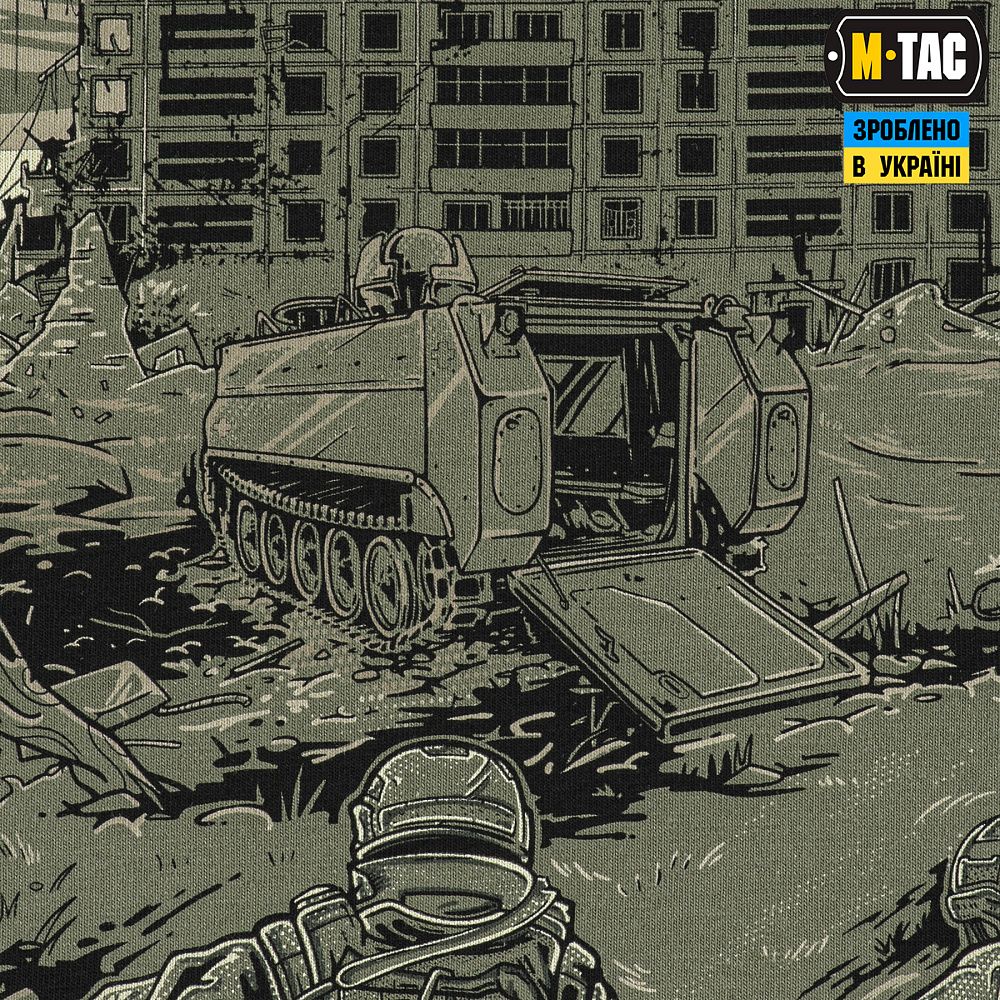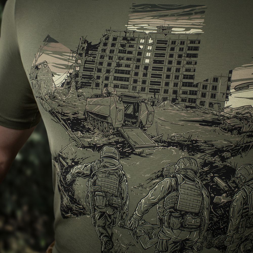 Основою для принта ФУТБОЛКИ EVAC, став епізод з життя бойових медиків. Які і вдень і вночі, у стабпунктах і на полі бою, не покладаючи рук, щоденно рятують життя своїх побратимів, раз за разом посилаючи смерть під три чорти.