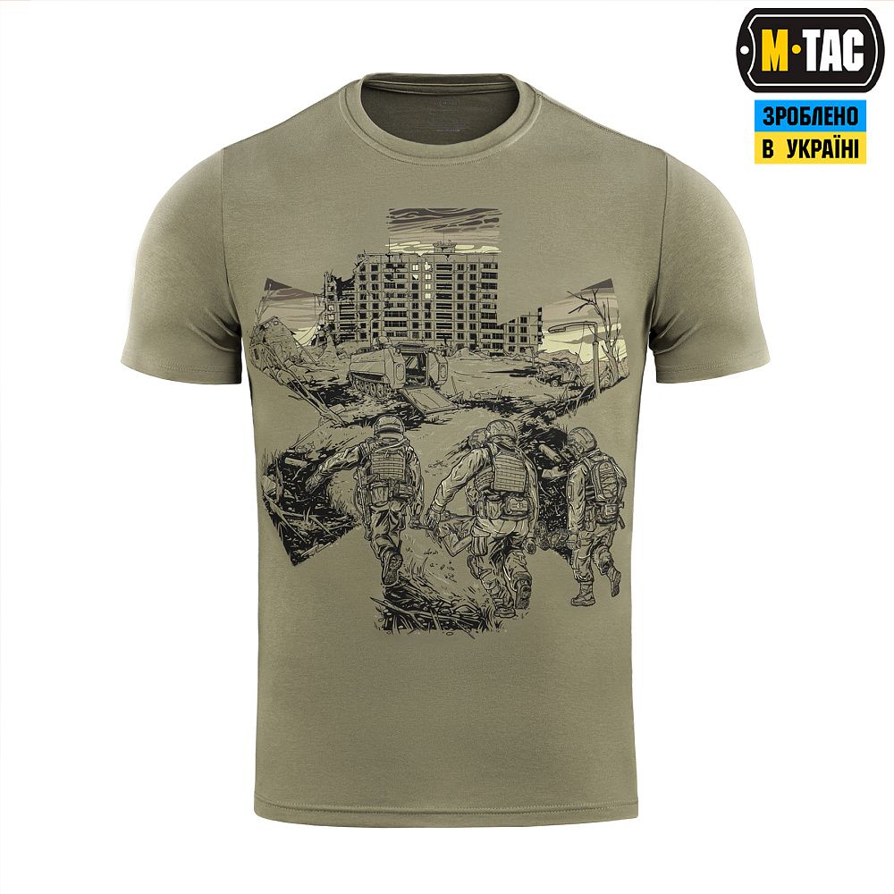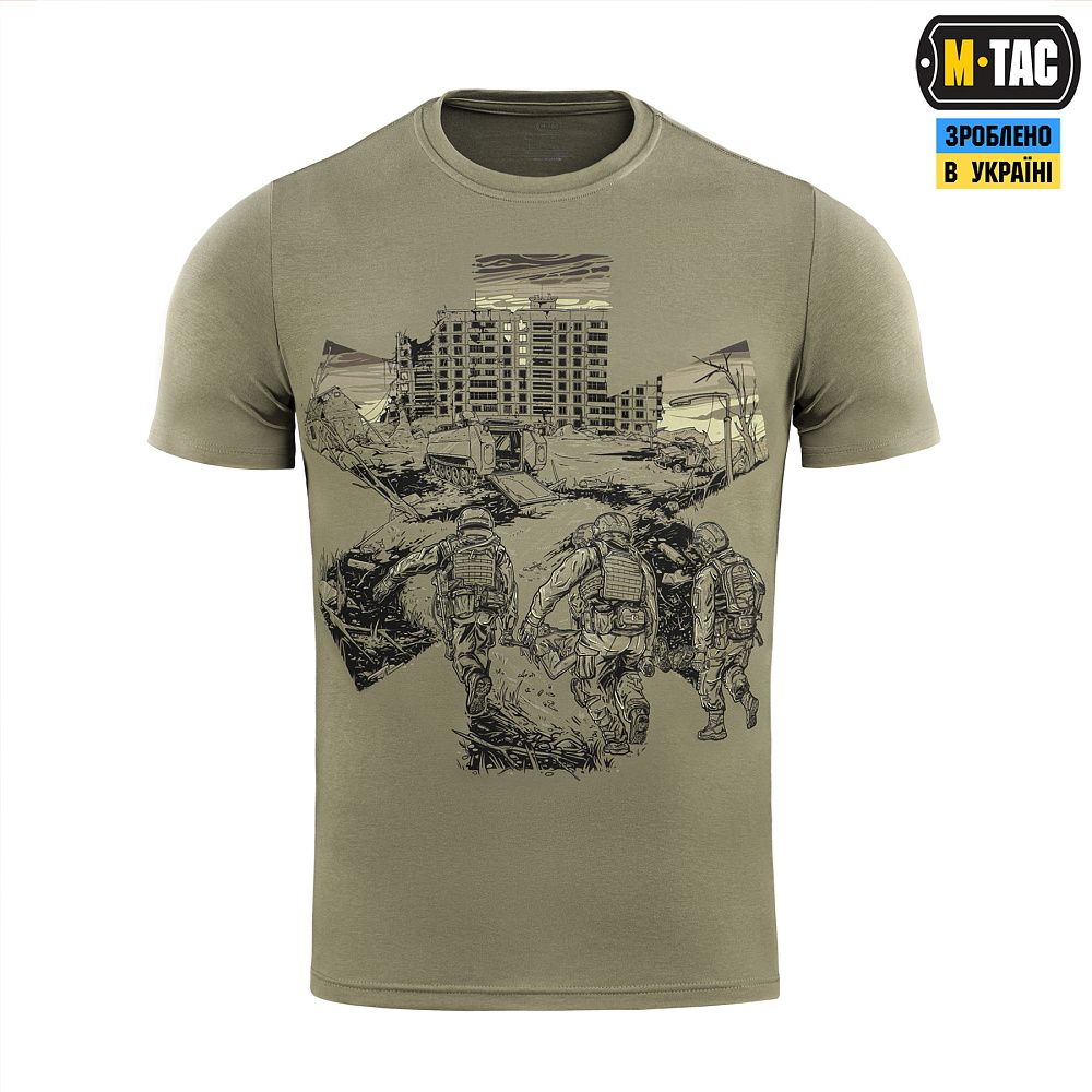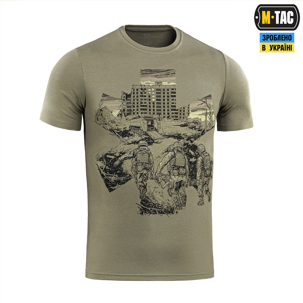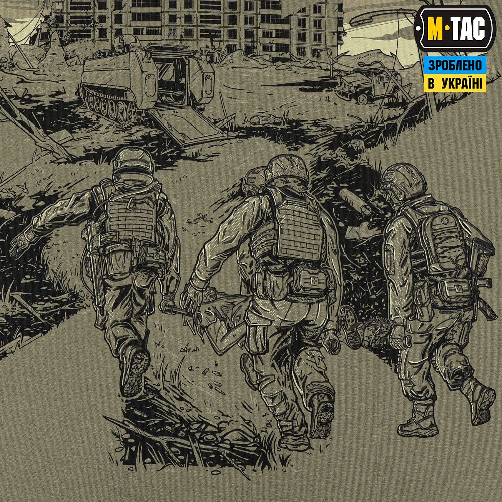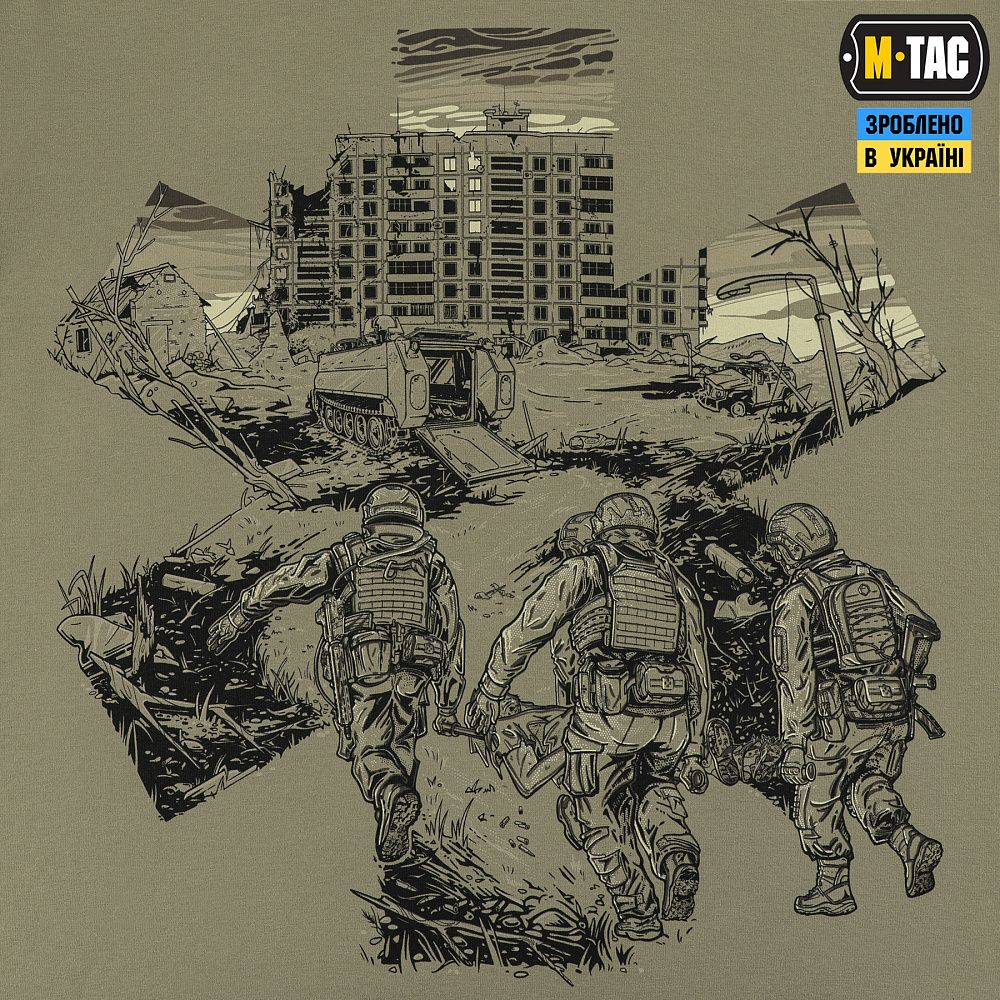 Основою для принта ФУТБОЛКИ EVAC, став епізод з життя бойових медиків. Які і вдень і вночі, у стабпунктах і на полі бою, не покладаючи рук, щоденно рятують життя своїх побратимів, раз за разом посилаючи смерть під три чорти.