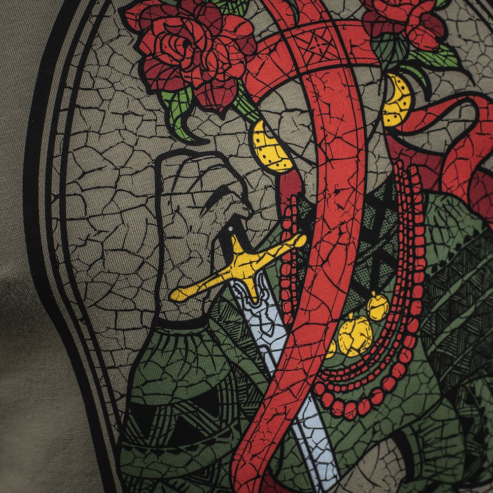 Спереду на футболці розташоване зображення ляльки-мотанки в традиційному українському вбранні. Тримаючи меч, що є символом козацького духу та бойових звитяг, вона мужньо стоїть на захисті України відправляючи в пекло проклятих ворогів, череп одного з них, вона тримає під рукою. Лялька-мотанка вбрана у вишиванку, в якій "зашитий" код нації. Вона символізує зв'язок поколінь, сьогодення, минуле і майбутнє українського народу. У мотанки відсутнє обличчя, замість нього намотаний хрест зі стрічок, як давній символ сонця у слов'ян. За народними повір'ями, це оберігало господаря ляльки від зурочення і нечистої сили.