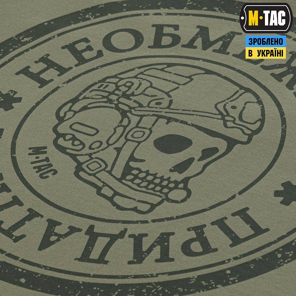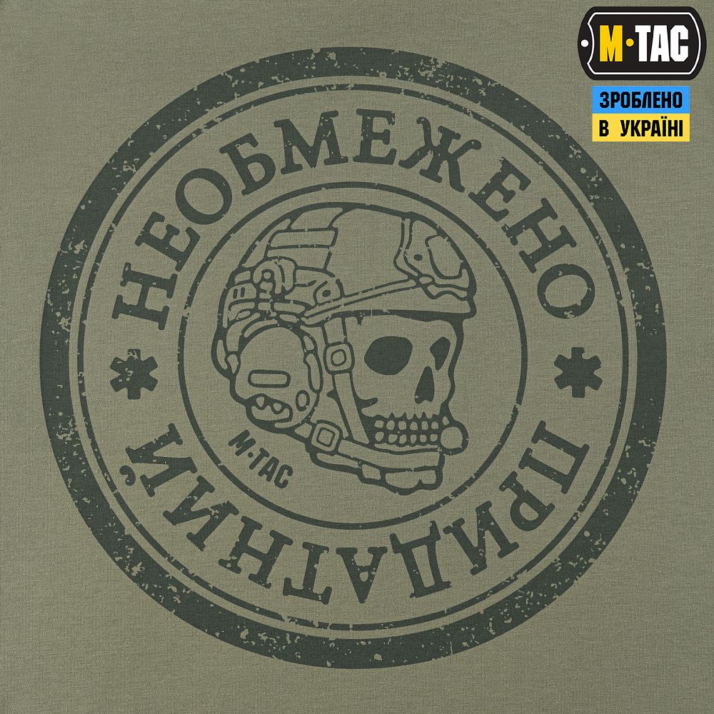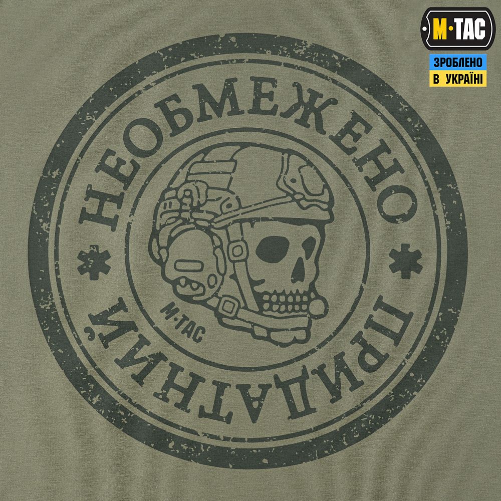На футболці зображений череп у військовій амуніції та напис “необмежено придатний”, що уособлює силу та непохитність духу хлопців, які навіть в тяжких умовах продовжують до кінця виконувати великий обсяг військових завдань.