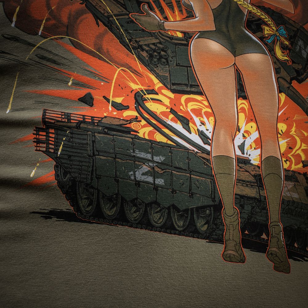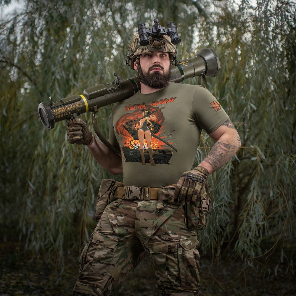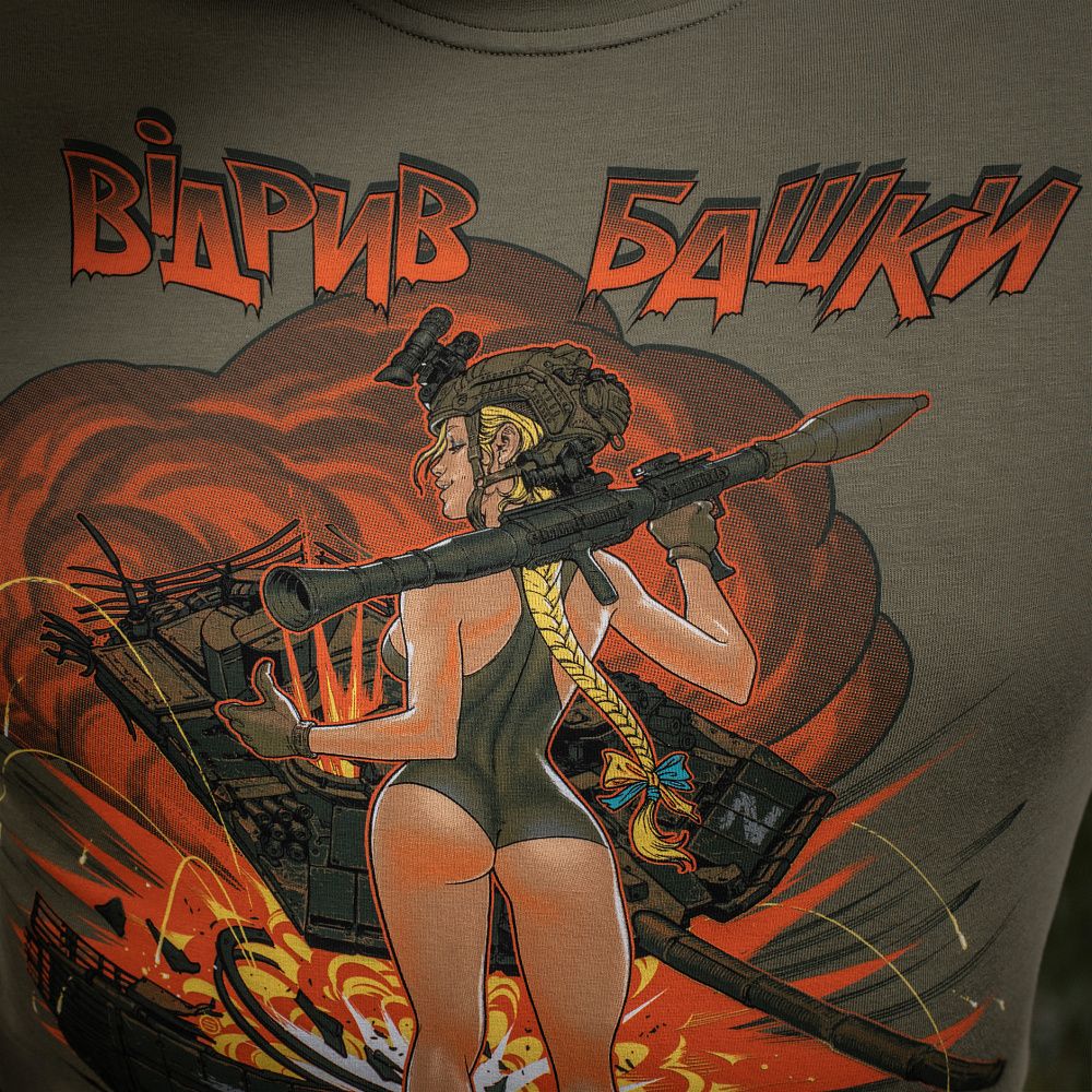 Бренд М-Тас, продовжуючи серію виробів із зображенням Pin-Up красунь, створив нову ФУТБОЛКУ ВІДРИВ БАШКИ, присвячену двом найпрекраснішим аспектам української сучасності - чарівним жінкам та ліквідованій ворожій техніці.