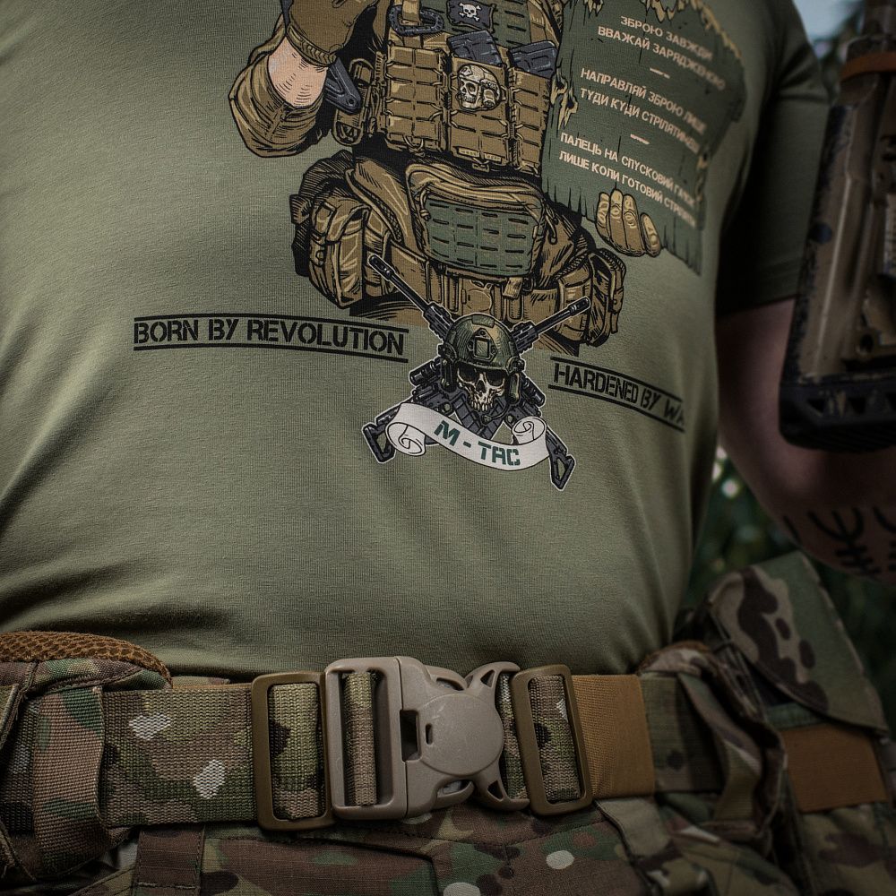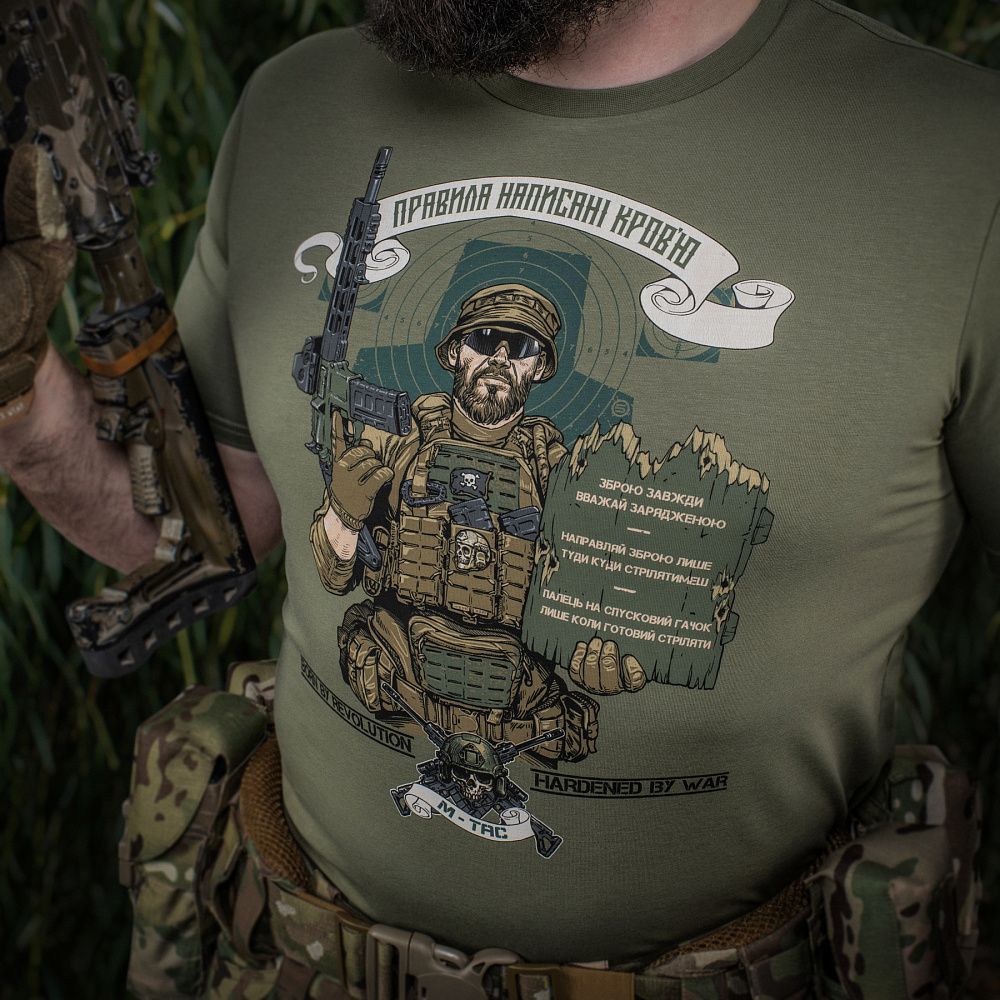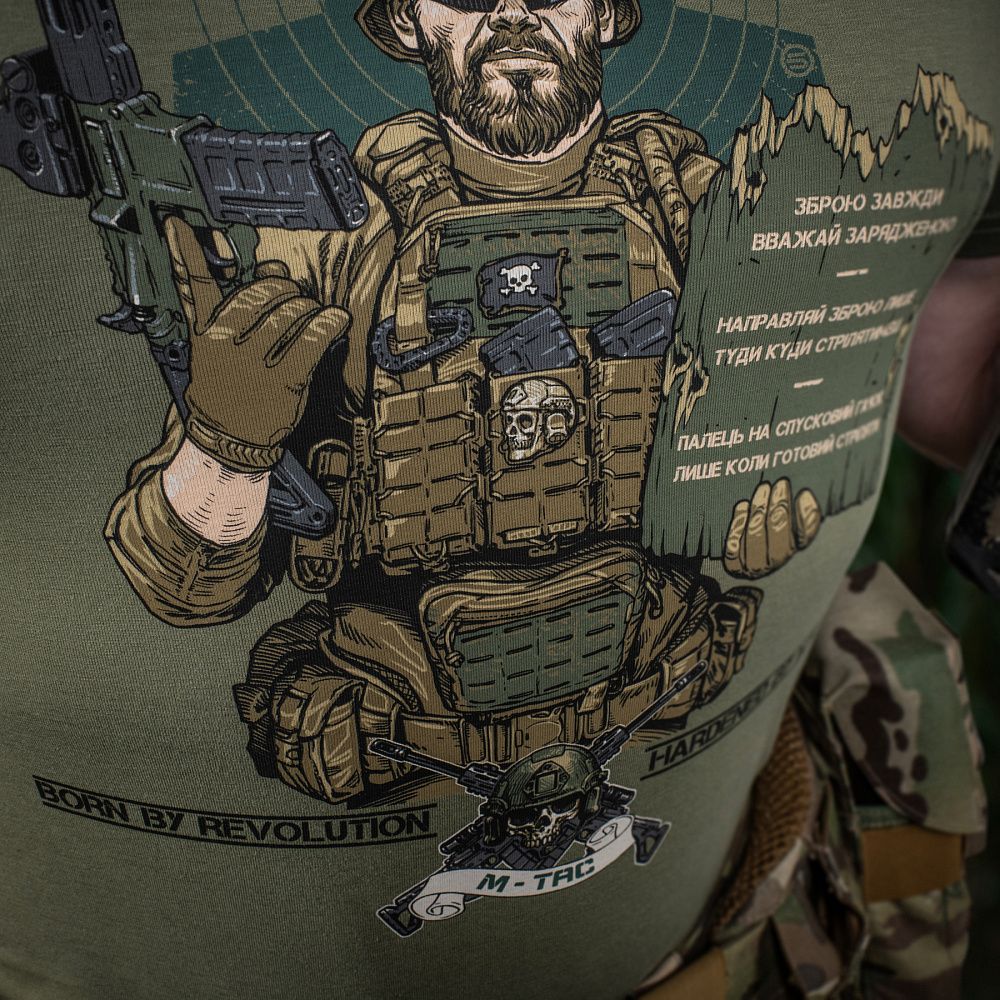 Сьогодні багато майбутніх захисників України проходять вишколи на полігонах та навчання з використання вогнепальної зброї. Кожен з них має усвідомлювати, що у поводженні зі зброєю є червоні лінії, які не можна перетинати. Саме ця важлива тема, спонукала дизайнерів бренду М-Тас на створення нової футболки, присвяченої стрільцям та їх основним, непорушним заповідям.