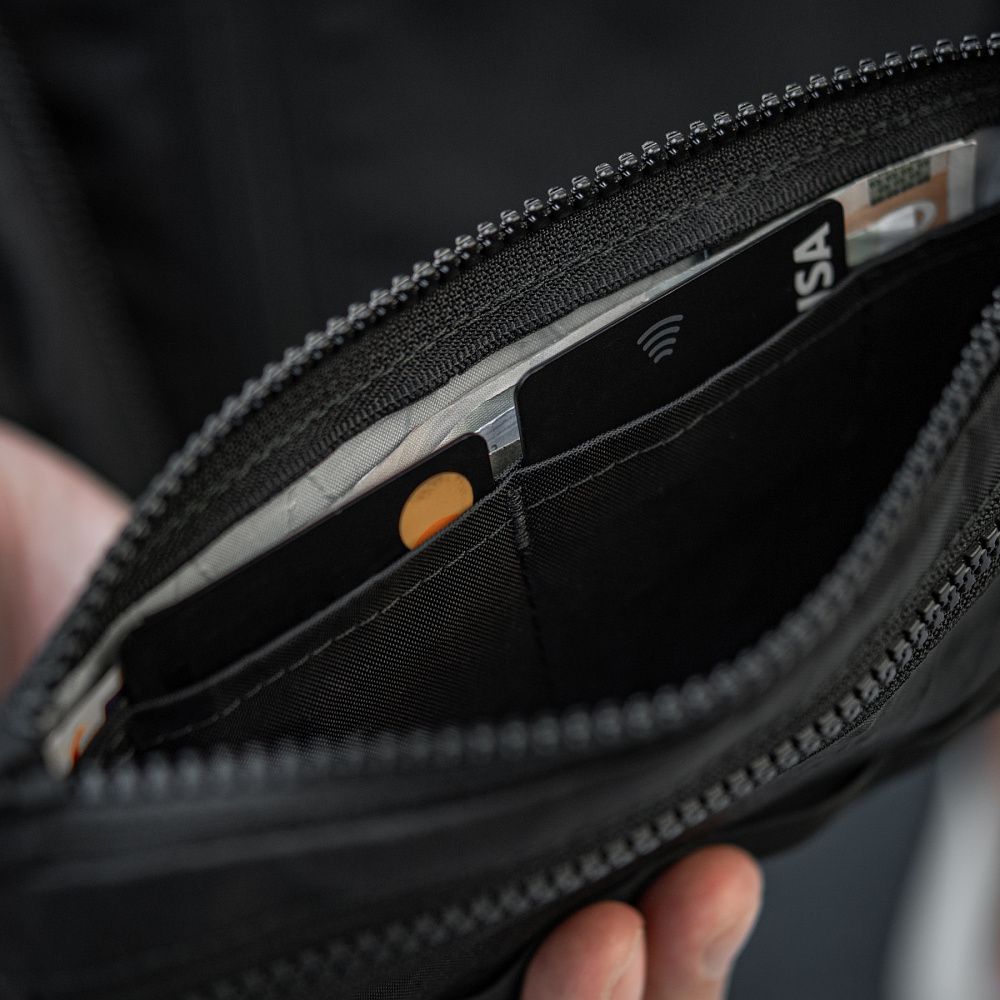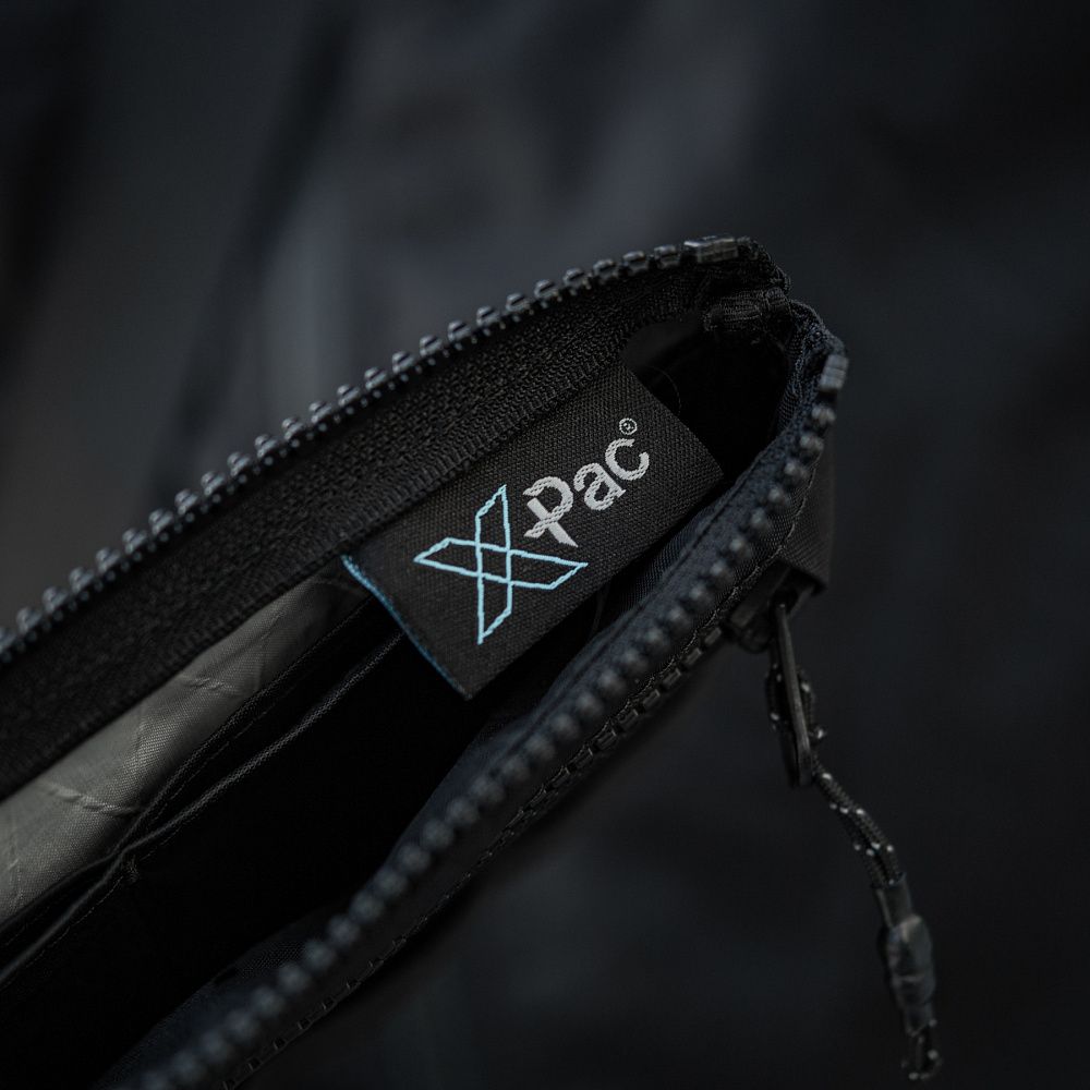 Гаманець виготовлений з інноваційного матеріалу X-PAC. Даний матеріал став широко відомим серед виробників тактичного спорядження, завдяки вдалому поєднанню міцності, невеликої ваги, стійкості до ультрафіолету та води.