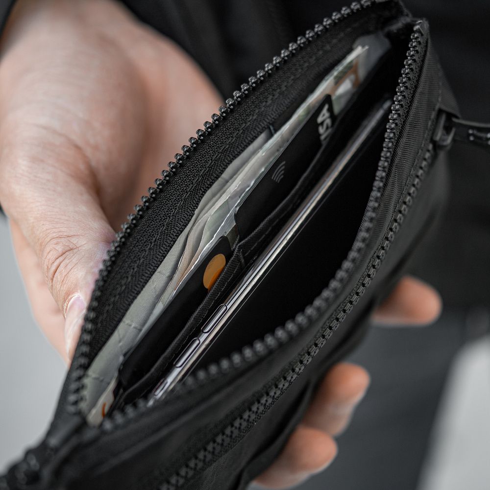 На фронтальній частині гаманця розташована кишеня, призначена для розміщення монет, а також система MOLLE виготовлена з інноваційного матеріалу Hypalon.