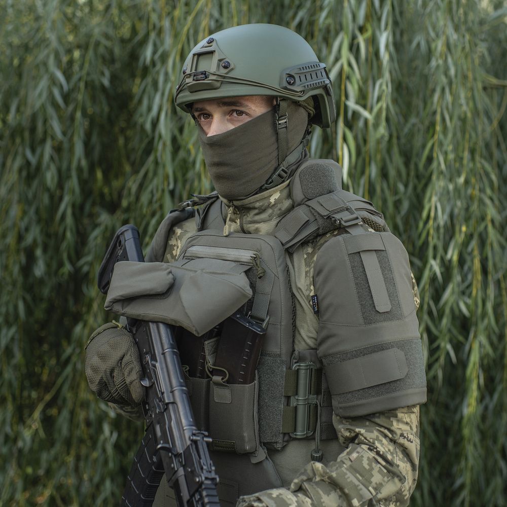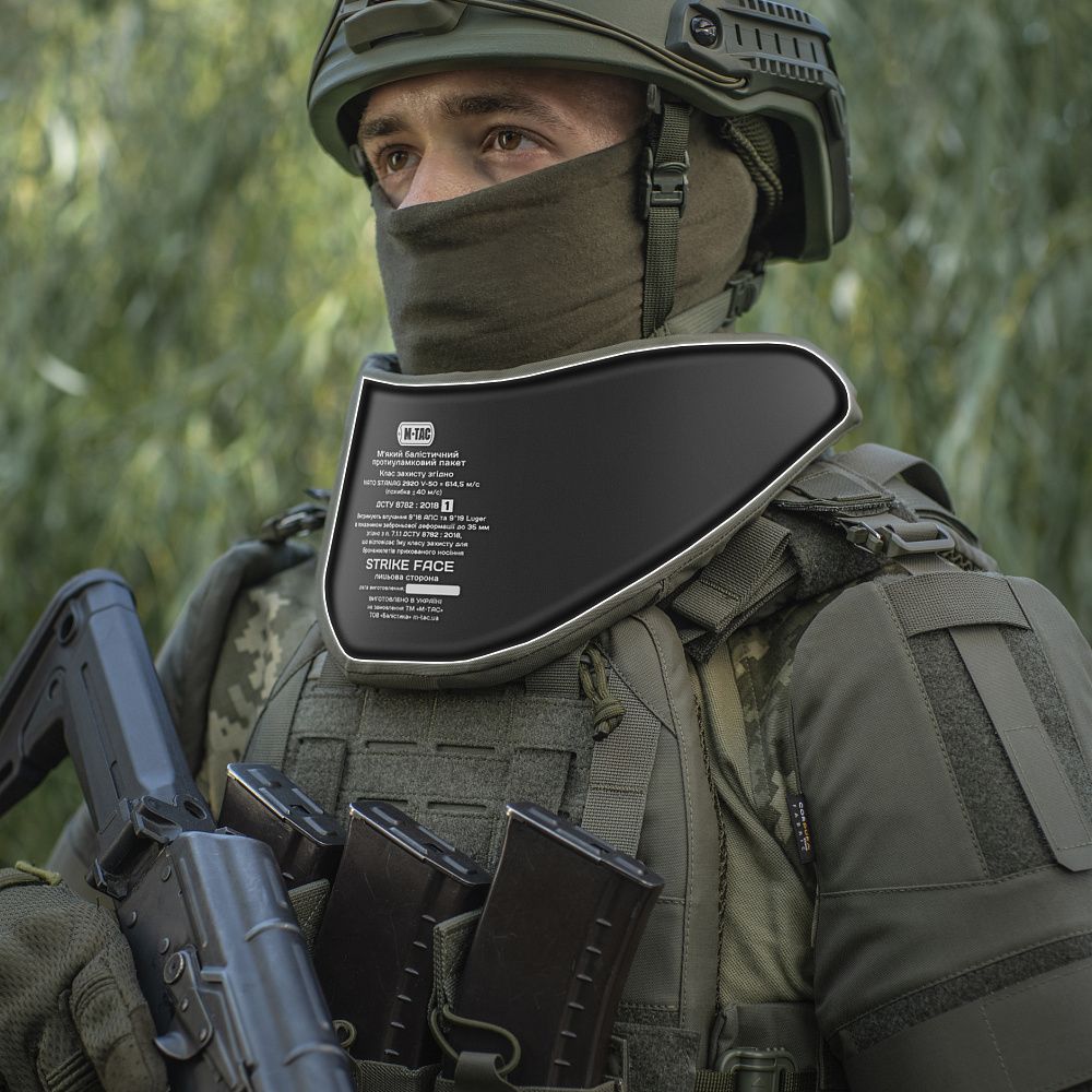 Бренд М-Тас розробив нову, вдосконалену концепцію системи індивідуального захисту бійця - M-TAC ГОРЖЕТ З БАЛІСТИЧНИМИ ПАКЕТАМИ 1 КЛАС ЗАХИСТУ ELITE GEN.II. Виріб являє собою компактний знімний модуль, що забезпечує круговий протиуламковий захист шиї та верхньої частини спини військового.