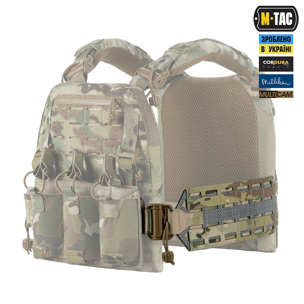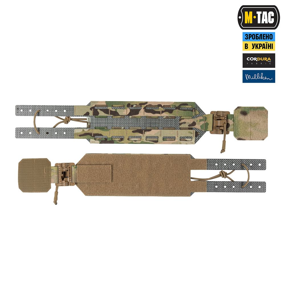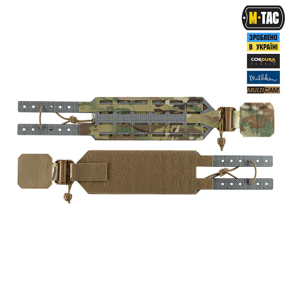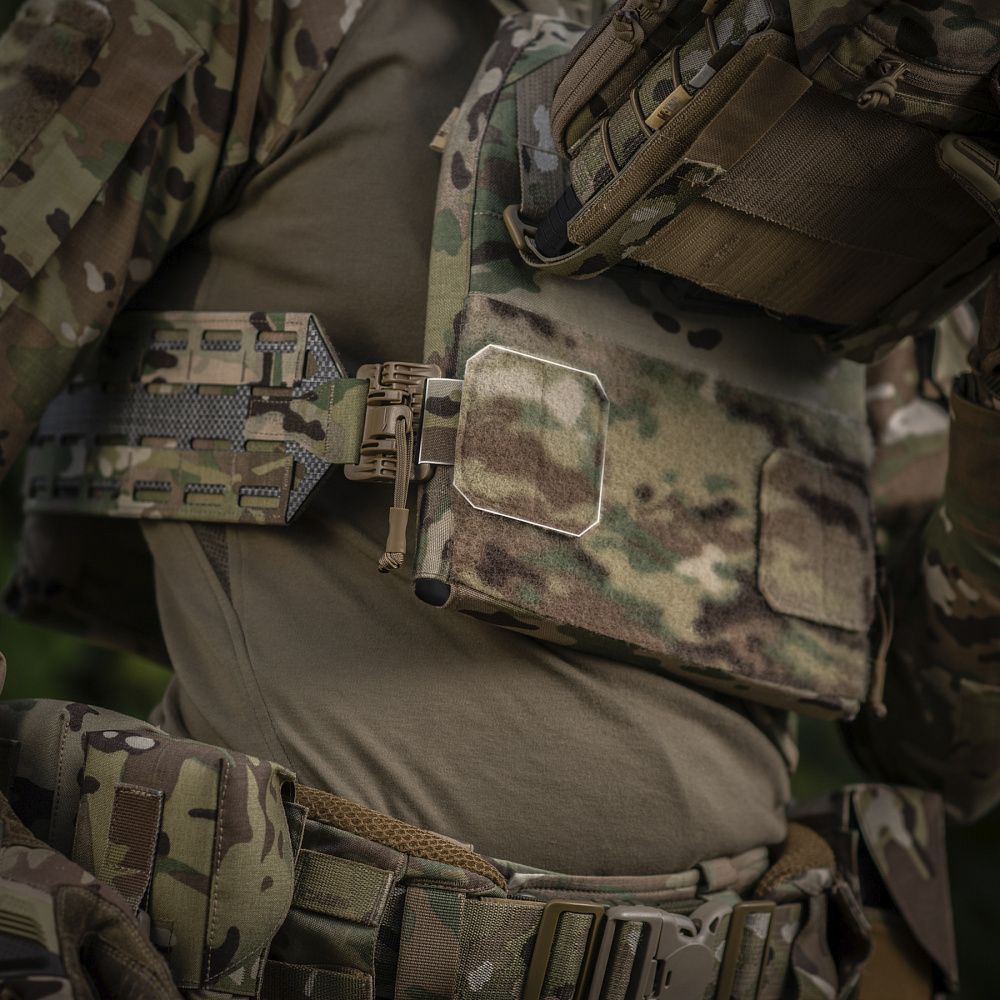 Завдяки жорсткій конструкції камербанд дозволяє щільно притиснути до тіла плитоноску, щоб вам було максимально комфортно під час інтенсивної ходьби або бігу. Жорсткий каркас камербанда зроблений із високотехнологічного термопластичного композиту Tegris по технології Laser Cut та обшитий Cordura Squadron. Революційний матеріал Tegris від компанії Milliken® (США) має меншу вагу, ніж традиційні термопластичні композити, але при цьому здатний витримувати велике навантаження. Фастекси швидкого скидання з фурнітури 2М ROC Buckle дозволять за лічені секунди від'єднати камербанд, просто потягнувши за темляки в напрямку стрілочок.
