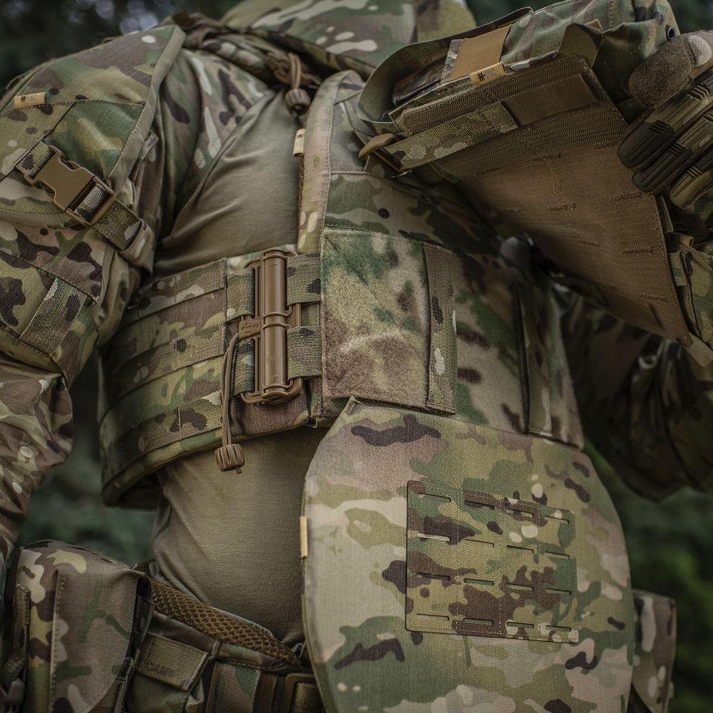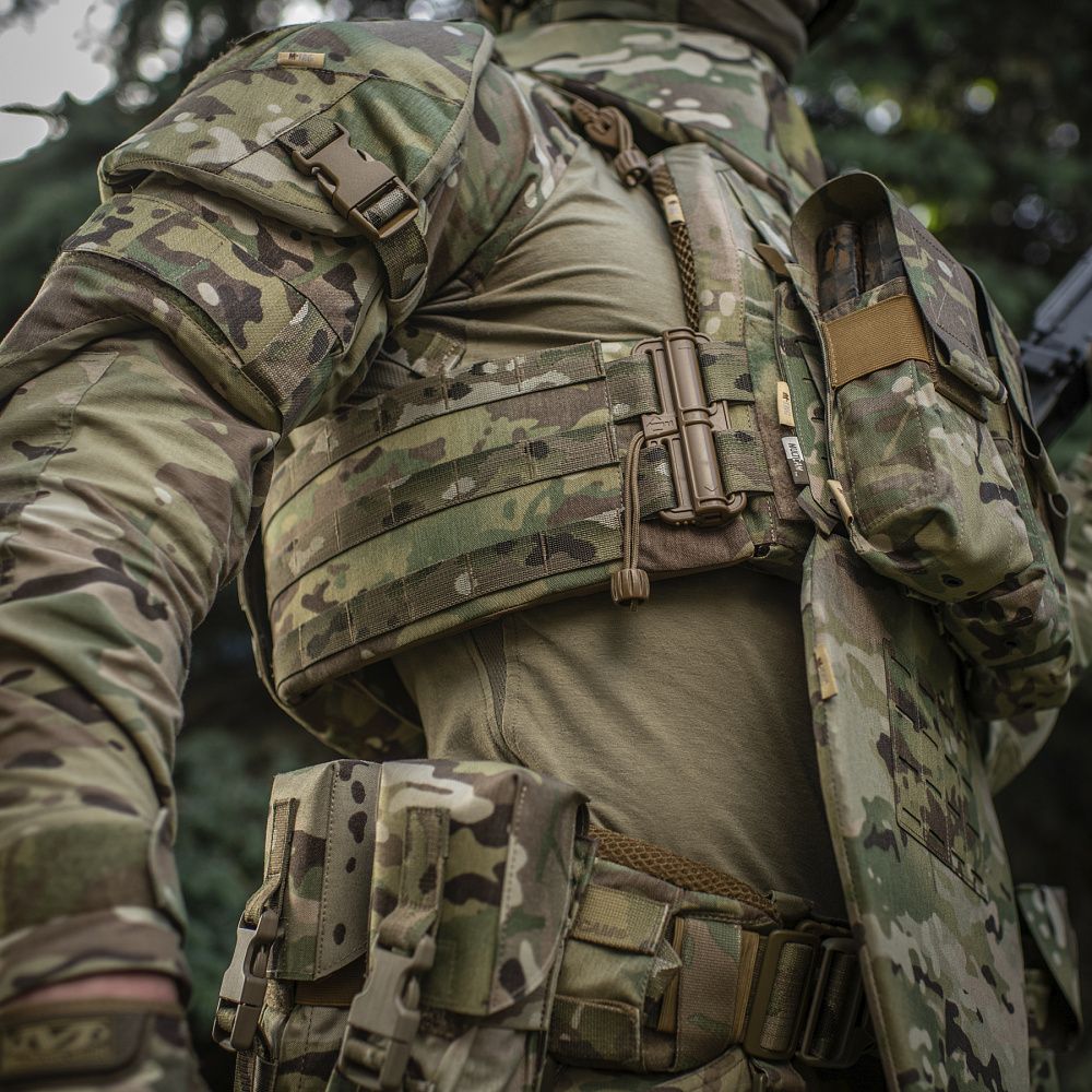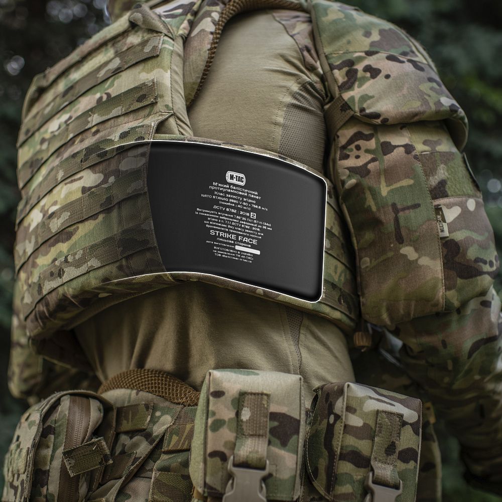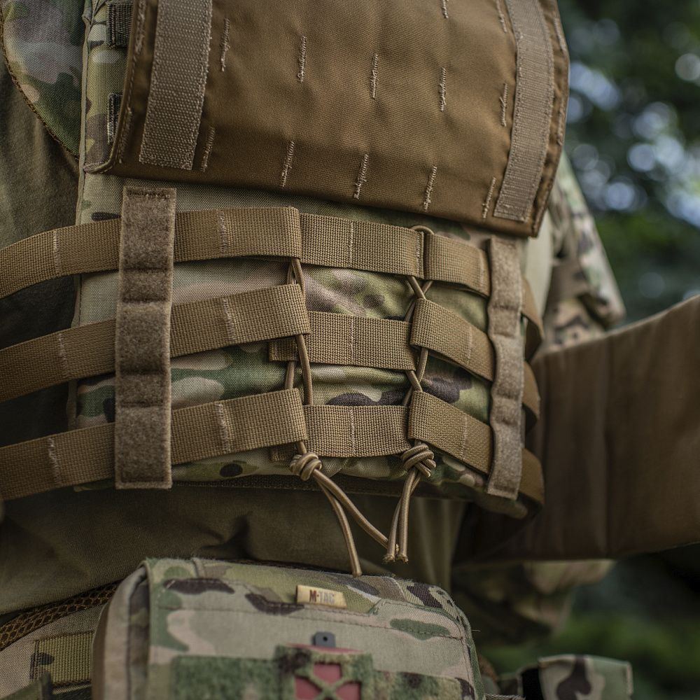 M-TAC КАМЕРБАНД З БАЛІСТИЧНИМИ ПАКЕТАМИ 2 КЛАС ДЛЯ CUIRASS ELITE створений спеціально для бокового кріплення до плитоноски Cuirass Elite. Його конструкція дозволяє щільно притиснути плитоноску до тіла і не давати їй коливатись під час інтенсивної ходьби або бігу.