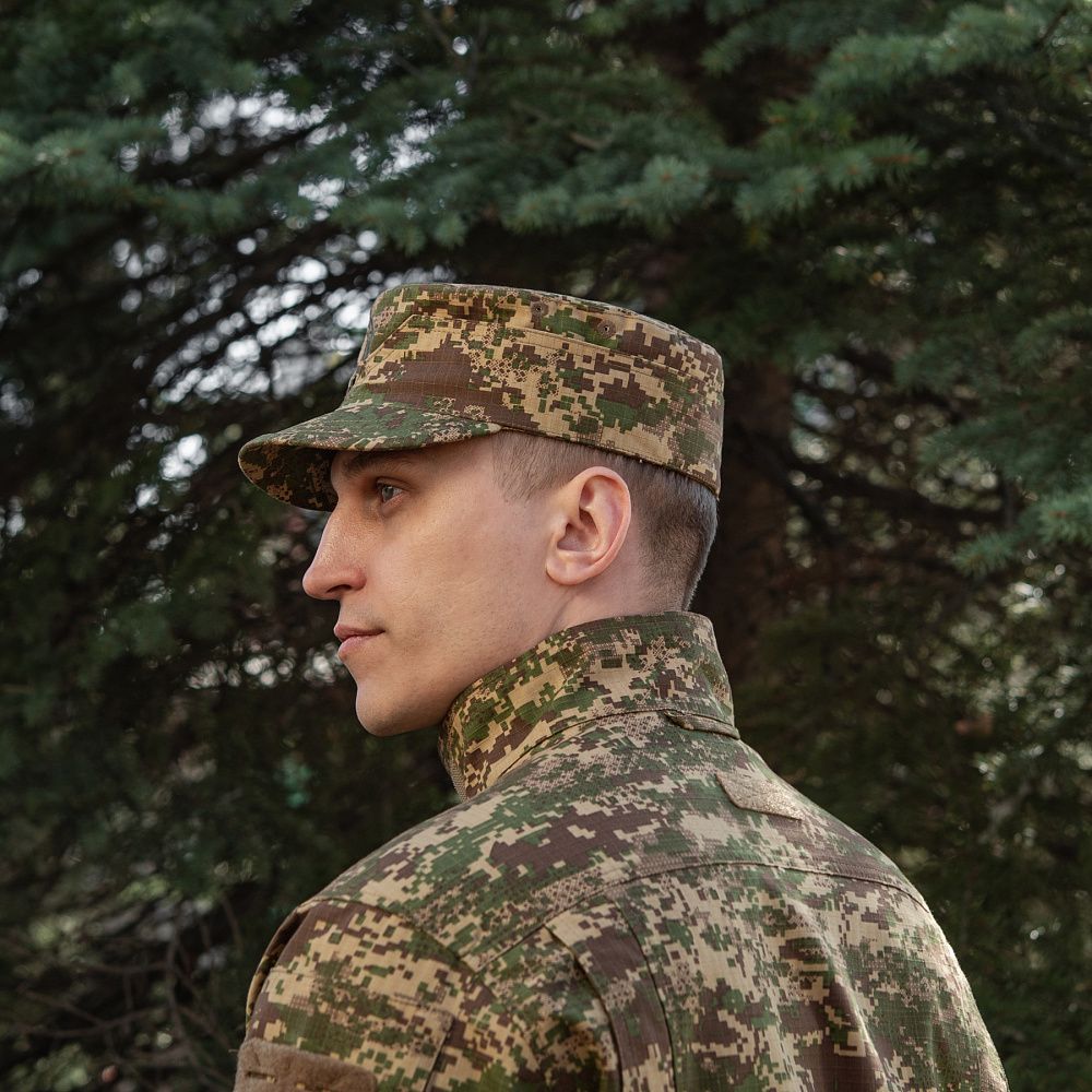 Кашкет виконаний у камуфляжі Національної гвардії України “Хижак”. Його основа пошита з матеріалу Rip-stop (бавовна, поліестер), а підкладка — з легкої дихаючої тканини (поліестер, бавовна). Поєднання даних матеріалів, наділяють кашкет чудовими зносостійкими та повітропроникними властивостями.