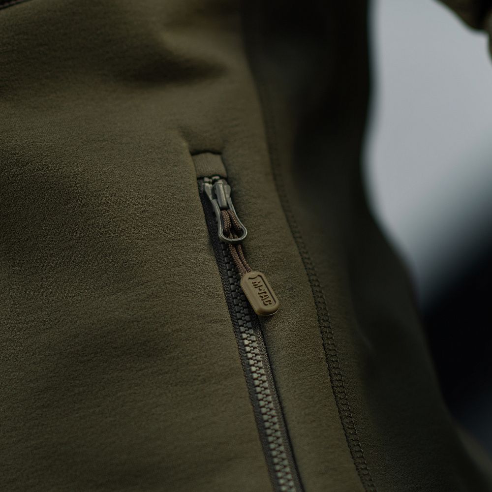 M-Tac кофта Berserk Polartec Primaloft має дві зовнішні та одну внутрішню кишеню (з правого боку). Застібається на блискавку від японської компанії YKK. Для підвищення комфорту – комір-стійка утеплена мікрофлісом, а низ рукавів оброблений брендованою резинкою.
