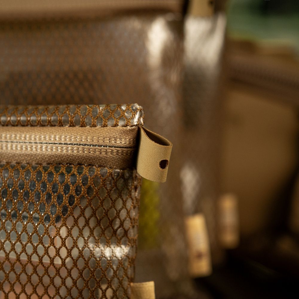 Органайзери застібаються на блискавку YKK AquaGuard, яка в поєднанні з основним матеріалом, забезпечуватиме захист вмісту від води/несприятливих погодних умов.