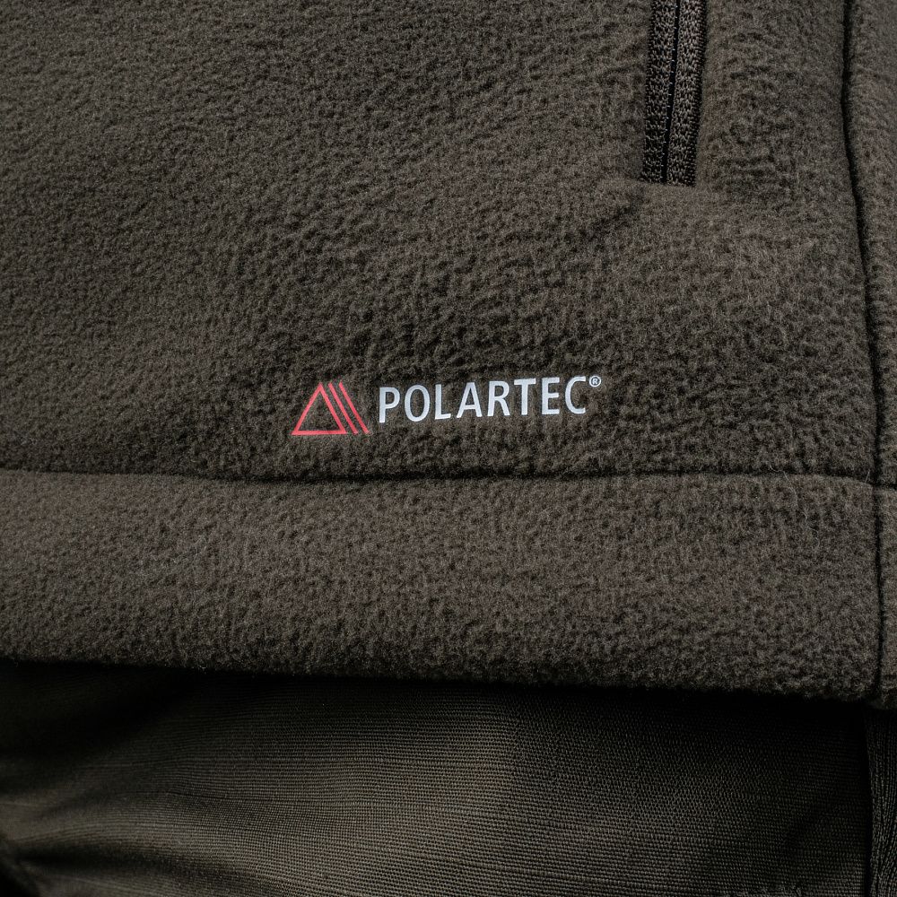 Combat Fleece Polartec Jacket має дві бокові кишені, які дозволяють раціонально розмістити всі необхідні речі. Велкро панелі призначені для кріплення патчів та ідентифікаторів. Нарукавні велкро панелі додатково мають відсіки під хімсвітло або інше канцелярське приладдя. Для кращої зносостійкості в зоні ліктів виробник додав вставки (матеріал: 98% нейлон, 2% еластан).