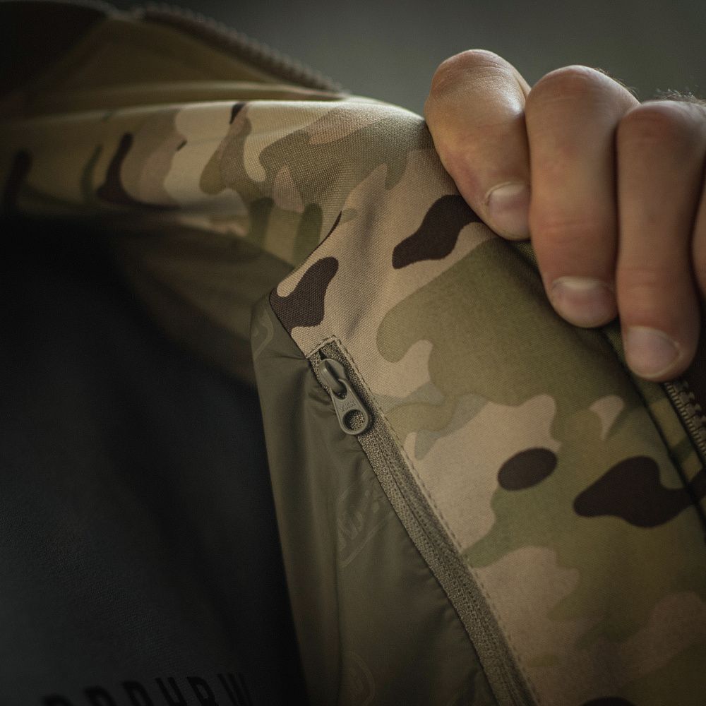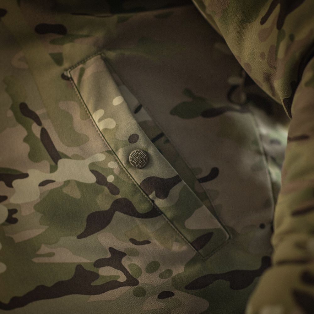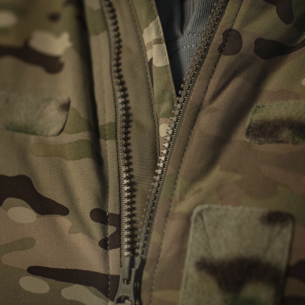 Оснащена двома фронтальними утепленими кишенями, що закриваються на кнопку, та однією внутрішньою на застібці-блискавці. На рукавах та передній частині розміщені велкро-панелі, призначені для кріплення ідентифікаторів і патчів.