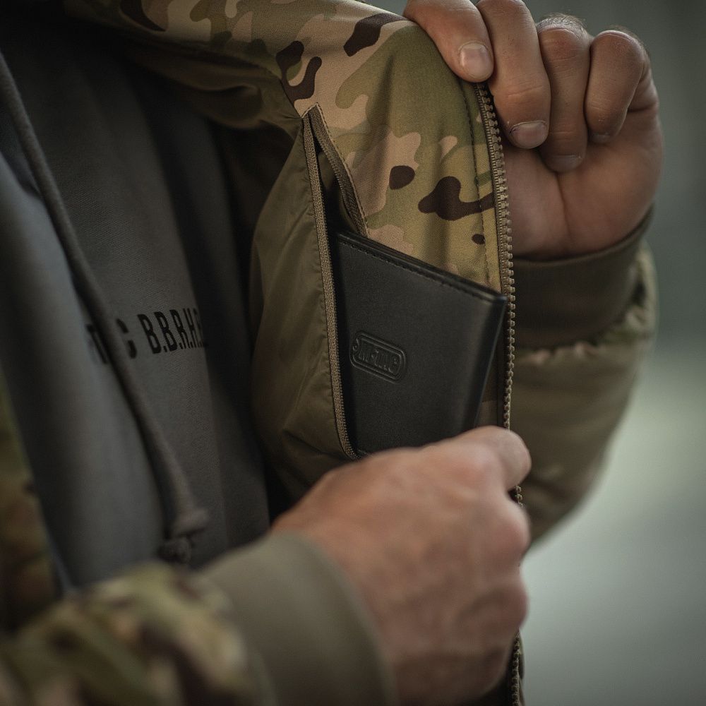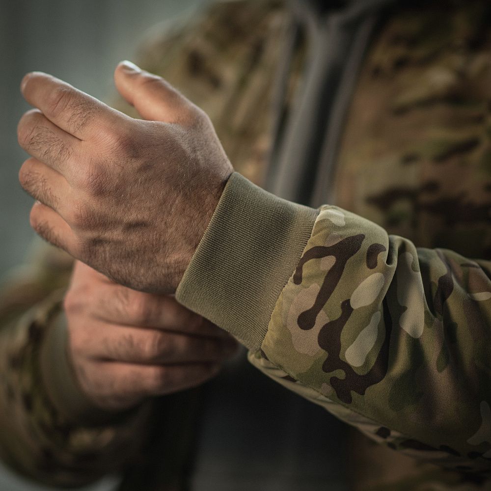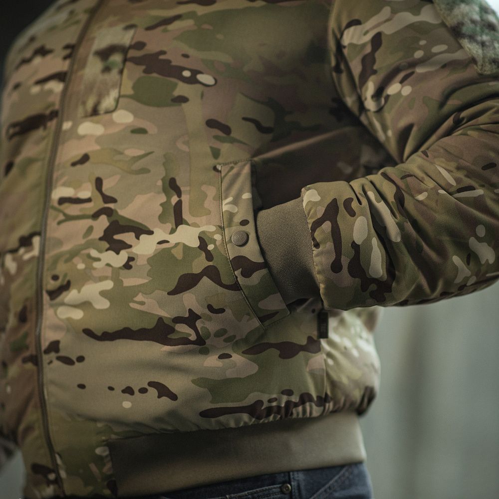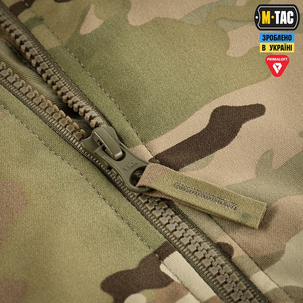 M-Tac куртка MA-1 Military Primaloft застібається на блискавку від лідера з виробництва фурнітури, японської компанії YKK. Рукава, низ виробу та горловина оброблені еластичним трикотажним полотном, що забезпечує збереження першочергової форми виробу та запобігає потраплянню холодного повітря всередину.