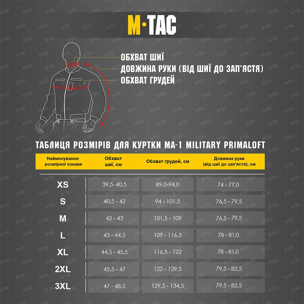 Нова M-TAC КУРТКА MA-1 MILITARY PRIMALOFT – відмінно підійде як для виконання тактичних завдань, так і повсякденного носіння.