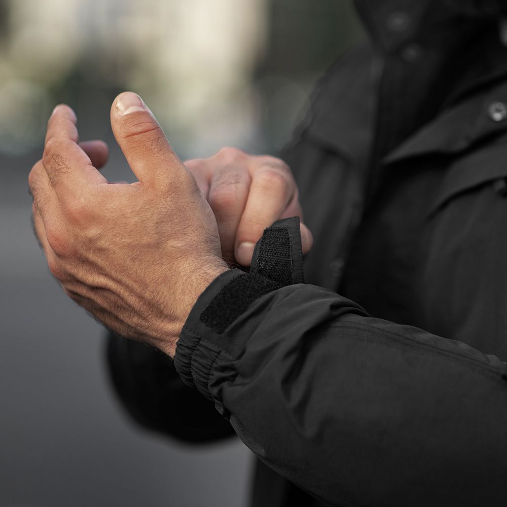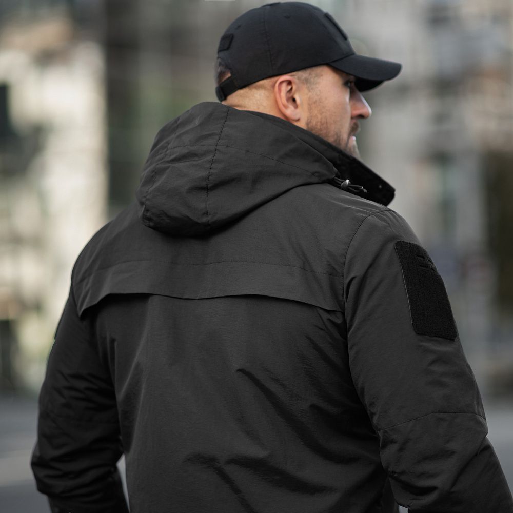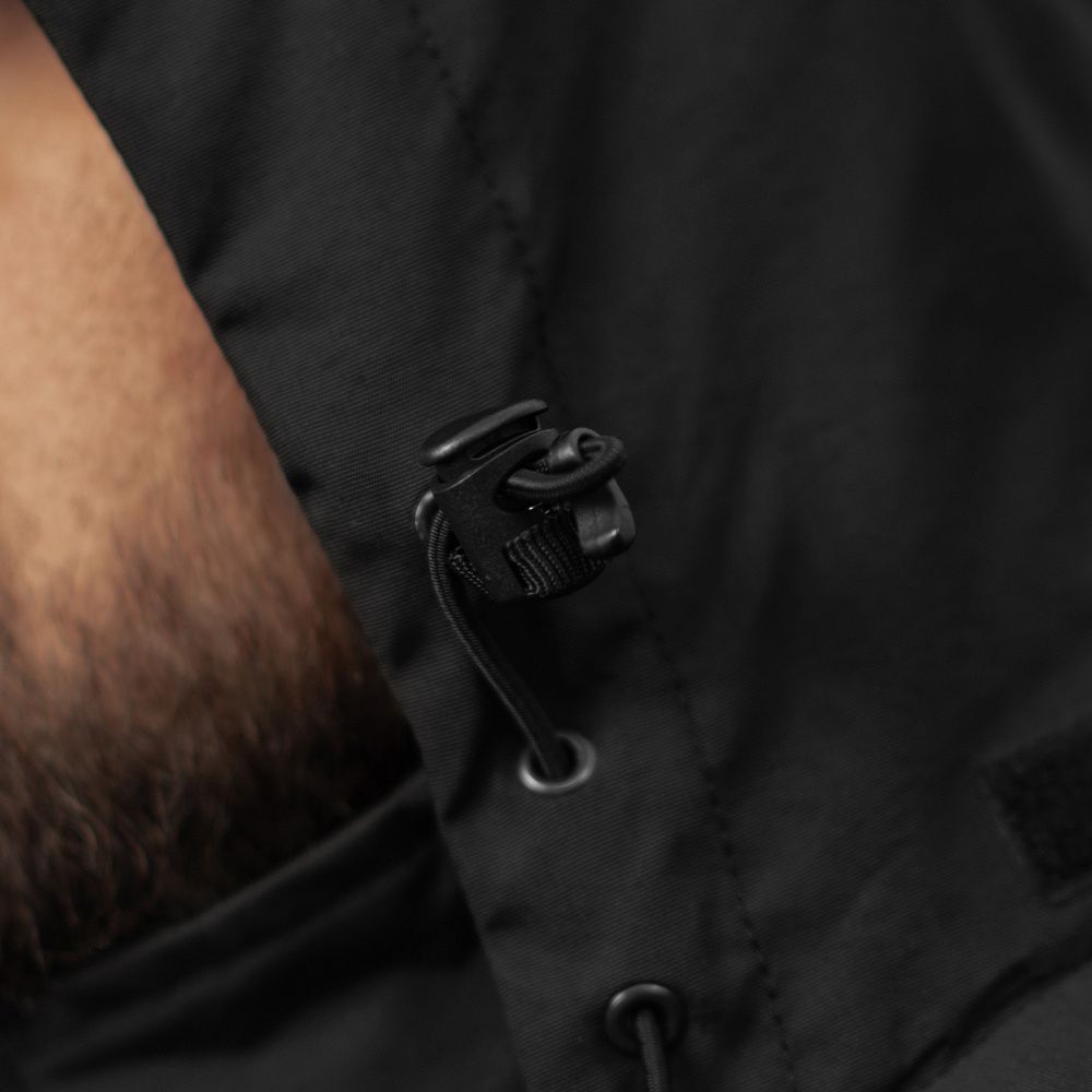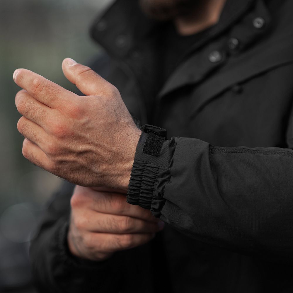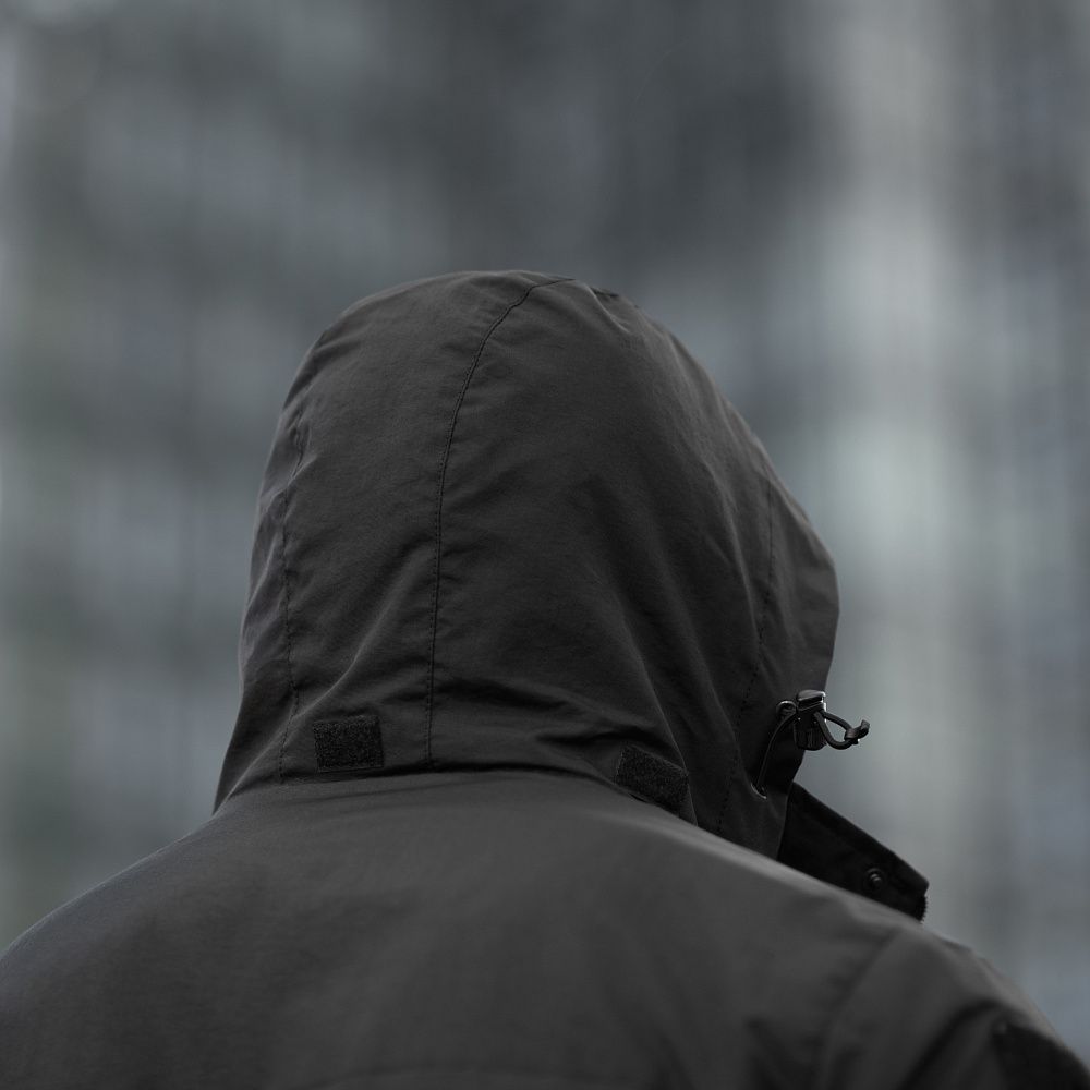 M-Tac куртка Sheriff обладнана незнімним регульованим капюшоном, який за бажанням можна заховати у комір-стійку. ЇЇ низ регулюється за об’ємом за допомогою еластичного шнура з фіксатором, а рукава – завдяки велкро-клапанам.