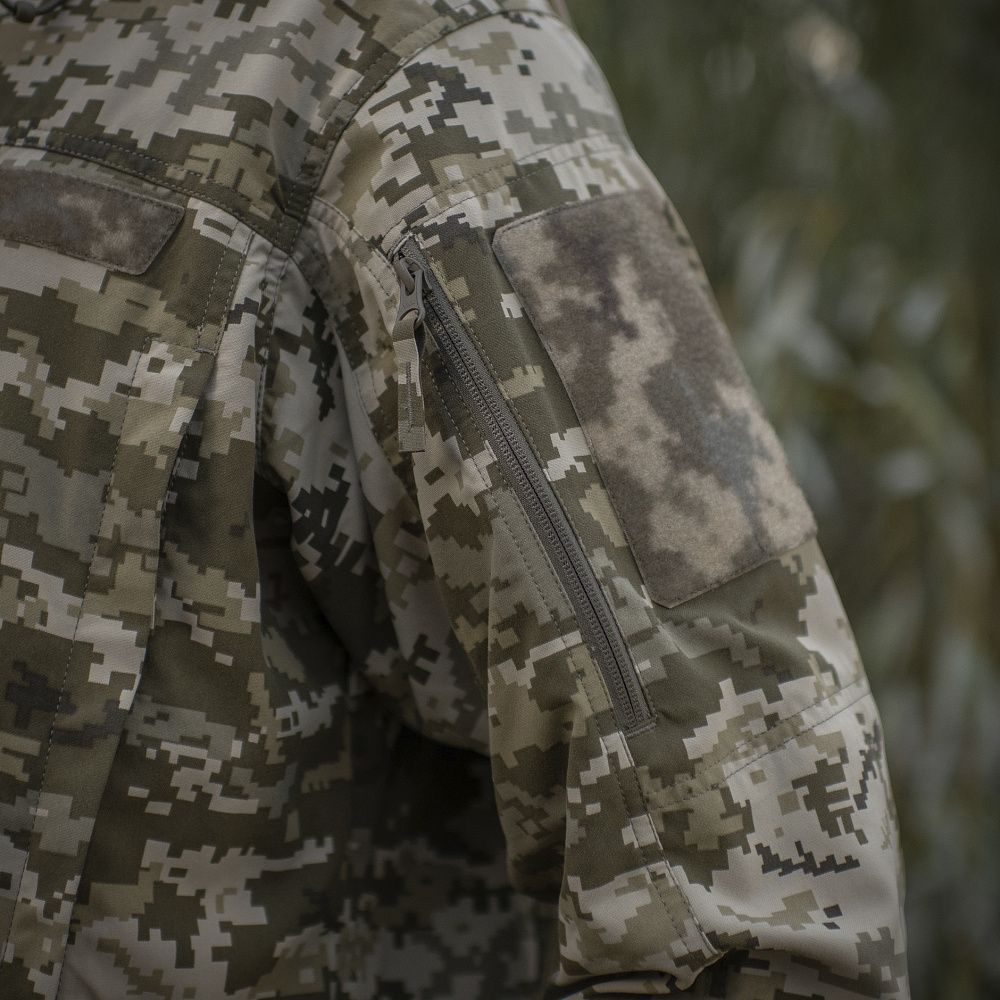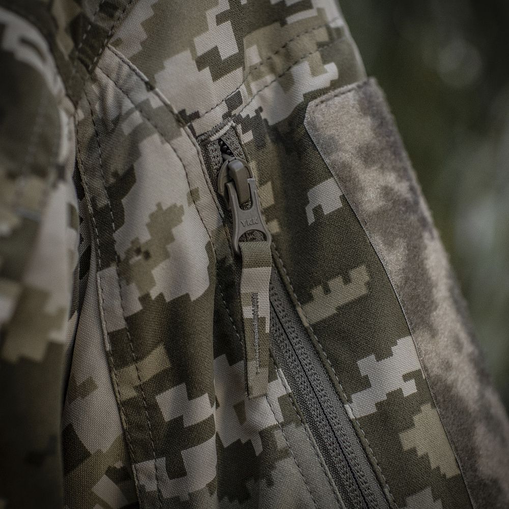 На рукавах розміщені місткі кишені на застібках-блискавках, поверх яких нашиті велкро-панелі для розміщення ідентифікаторів та патчів. З метою забезпечення оптимальної терморегуляції в зоні пахв, конструктори бренду додали спеціальні застібки-блискавки.