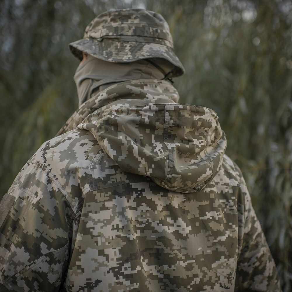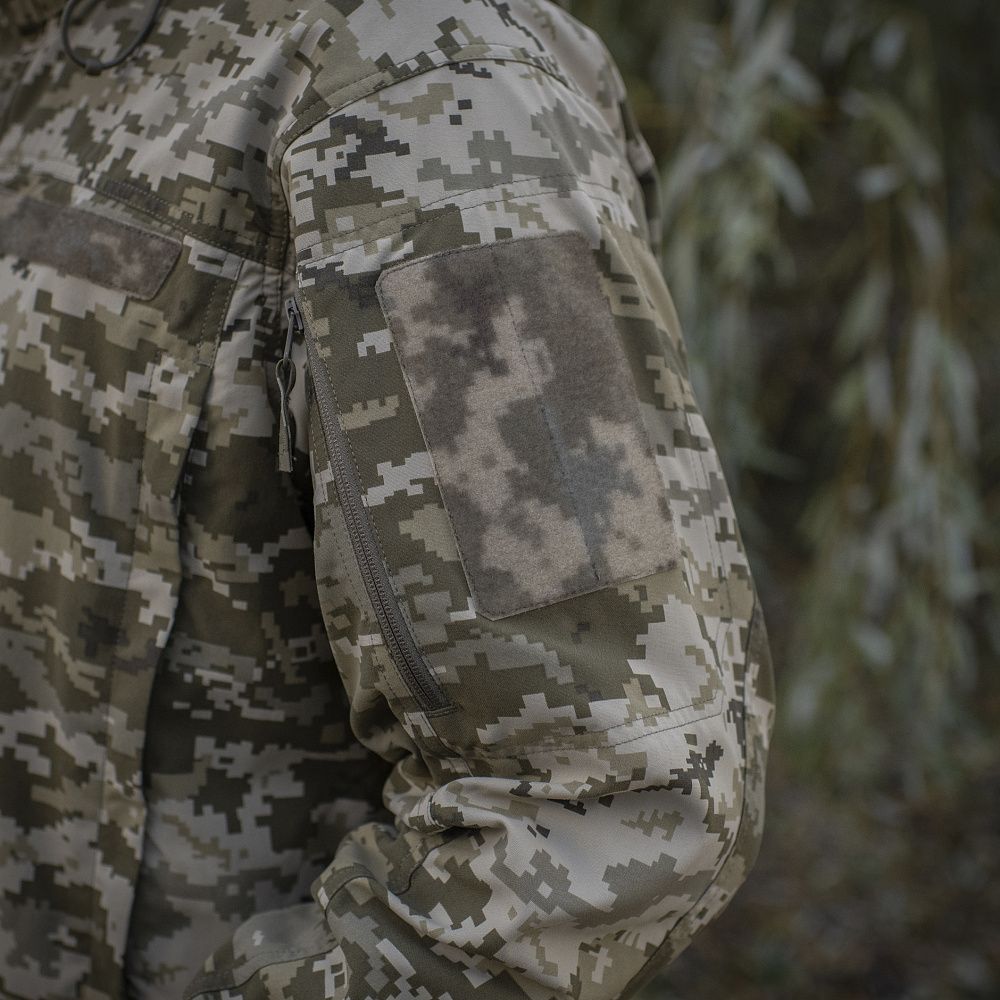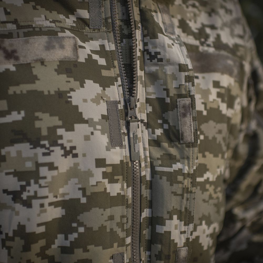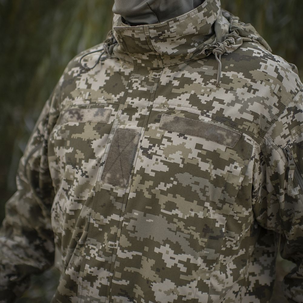 Завдяки вільному крою, куртку можна комбінувати з іншими видами одягу (термобілизна, флісова кофта тощо) при цьому не обмежуючи рухи під час активних фізичних навантажень. На фронтальній частині куртки розташовані дві великі кишені на застібках-блискавках, а також 3 велкро-панелі: 2 іменні над кишенями та одна по центру грудей, для кріплення звання.