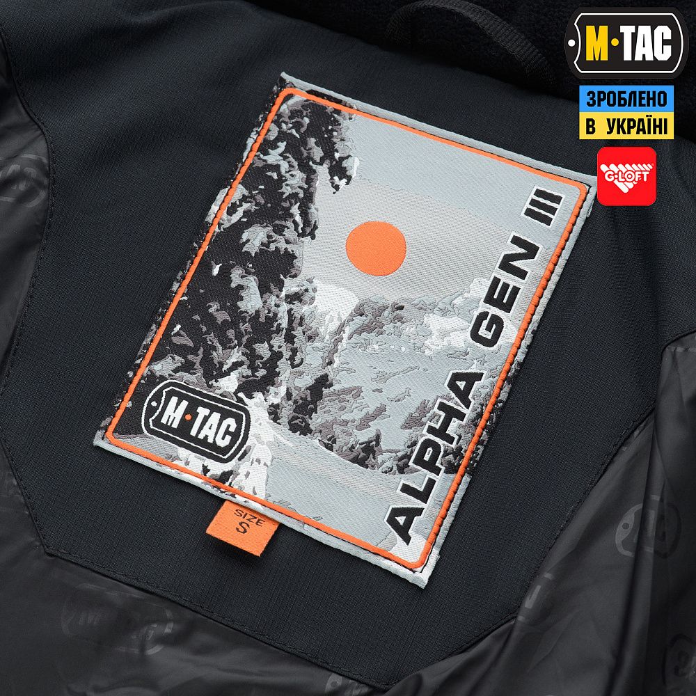 M-Tac куртка зимова Alpha Gen.III була розроблена як багатофункціональна куртка. Ефективний ізоляційний шар одночасно забезпечує відмінний захист від вітру і холоду. Дана модель була розроблена з урахуванням досягнень провідних виробників, а також досвіду та побажань службовців МВС та ЗСУ. Alpha орієнтована на помірні фізичні навантаження, наприклад довготривалі патрулювання, на котрі випадає більшість часу. Комір з регулюванням і утепленим капюшоном, флісові манжети і вітро\вологозахисні застібки-блискавки допоможуть зберегти тепло та відчуття комфорту в зимових умовах. Не зважаючи на це, завдяки сучасним матеріалам і прогресивній конструкції, куртка зовсім не обмежує рухи, а також дозволяє раціонально розмістити потрібні предмети й обладнання у зручно розташованих кишенях. Під рукавами розташовані два клапани, що забезпечують доступ до спорядження під курткою, які також можна використовувати для вентиляції.