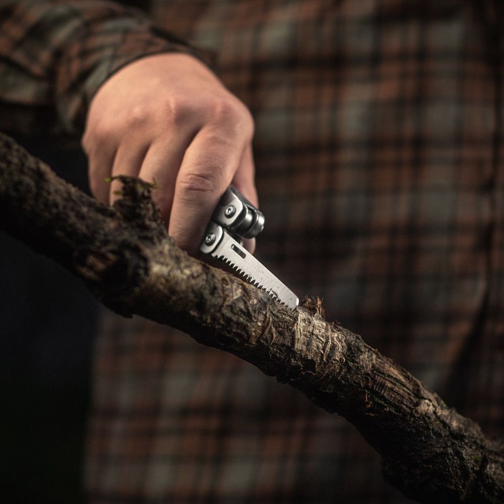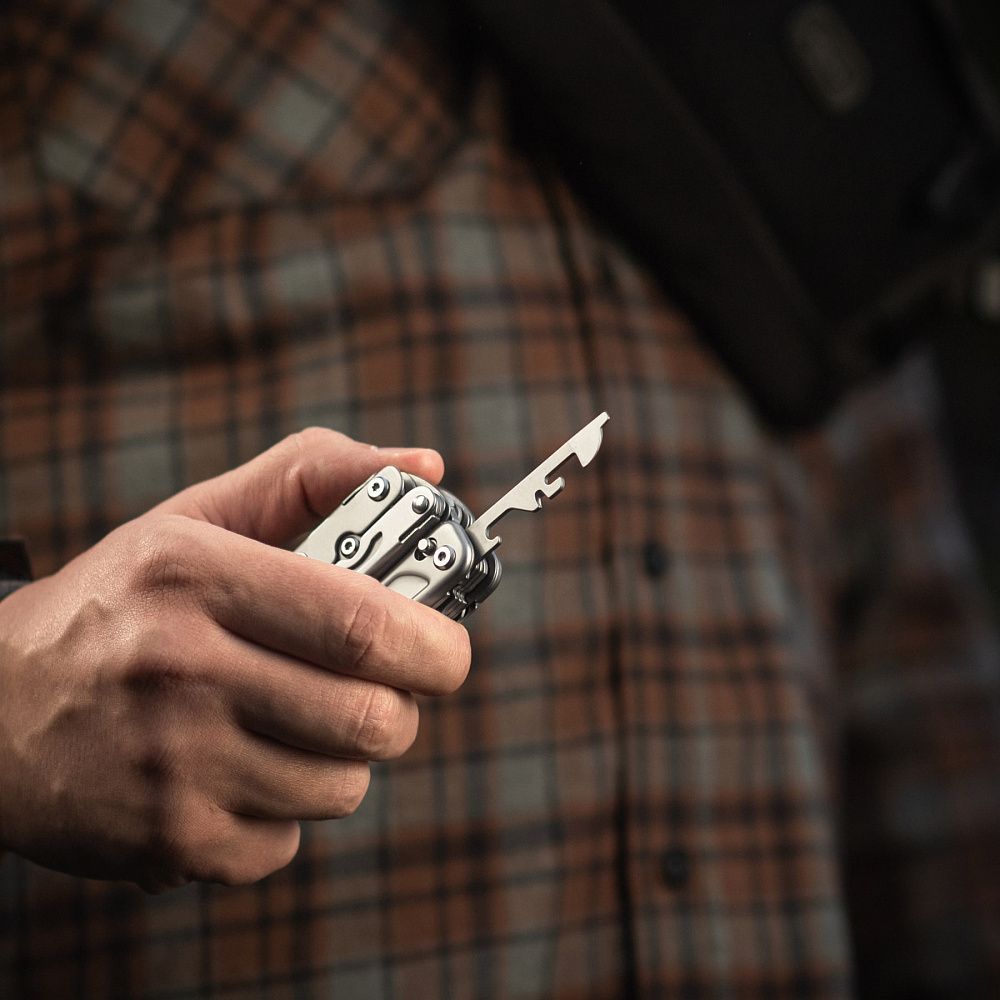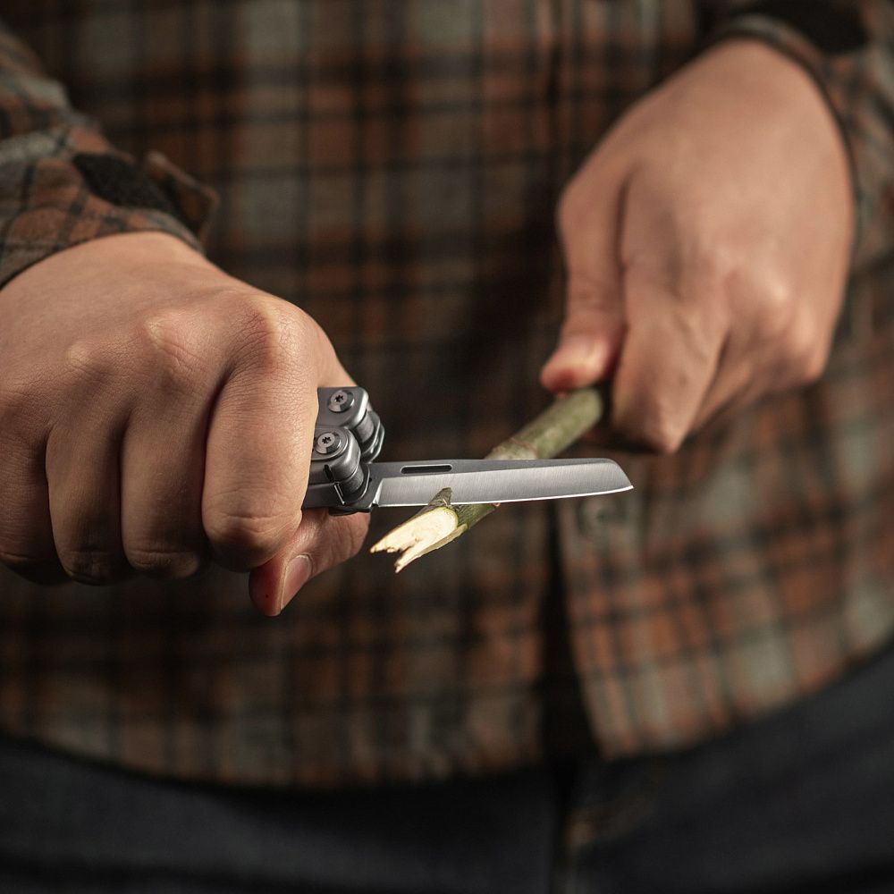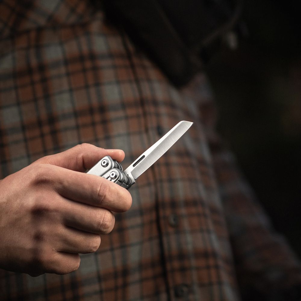 Мультитул виготовлений із поєднання нержавіючих сталей 440 та 420, які забезпечують міцність, довговічність і стійкість до корозії. Також, ці сплави легко очищуються, не вбирають запахи й не впливають на смак їжі.