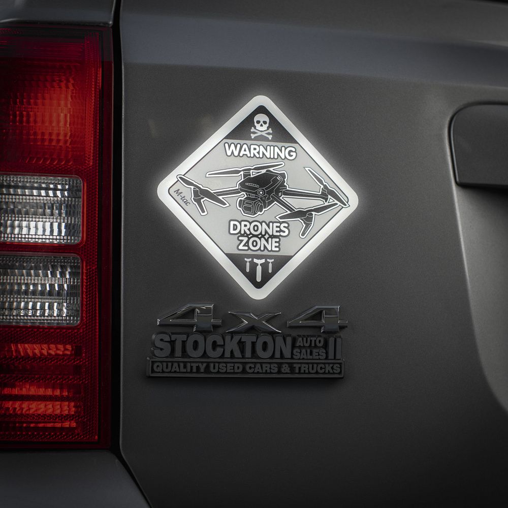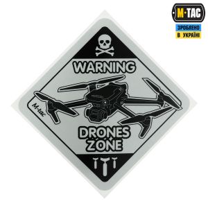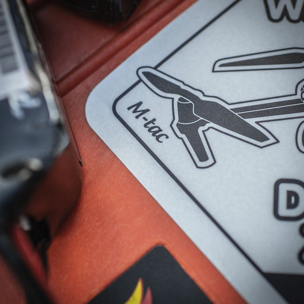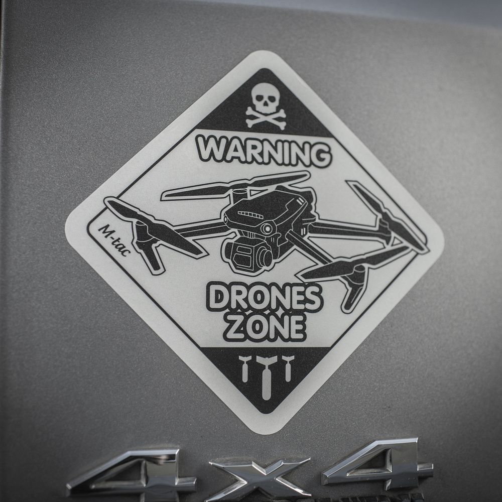 Щодня українські захисники активно використовують дрони для виявлення і знищення ворожої техніки та складів з боєприпасами. Тому бренд М-Тас випустив оригінальну наклейку DRONES ZONE, яка присвячена операторам БПЛА аеророзвідки.