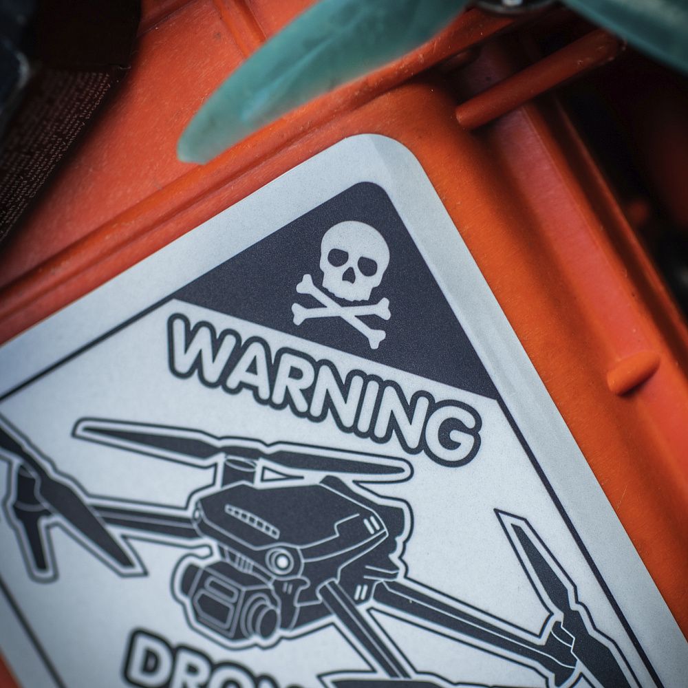 На стікері зображений дрон з попереджувальною позначкою (небезпека з неба) та напис Warning Drones Zone з натяком, що сьогодні у ворога будуть проблеми з опадами. Використання безпілотників різних видів допомагає аеророзвідникам бачити ціль, а артилерії влучно відпрацьовувати її. БПЛА дають змогу вести розвідку з великої відстані, виявляти ворожі цілі, коригувати та скидати на голову противника боєприпас. Рішення на ураження приймаються за секунди, що значно впливає на тактику проведення операцій. «Байрактари», дрони-камікадзе та цивільні дрони, що перероблені на ударні, спалюють техніку з повітря та безумовно впливають на хід війни.