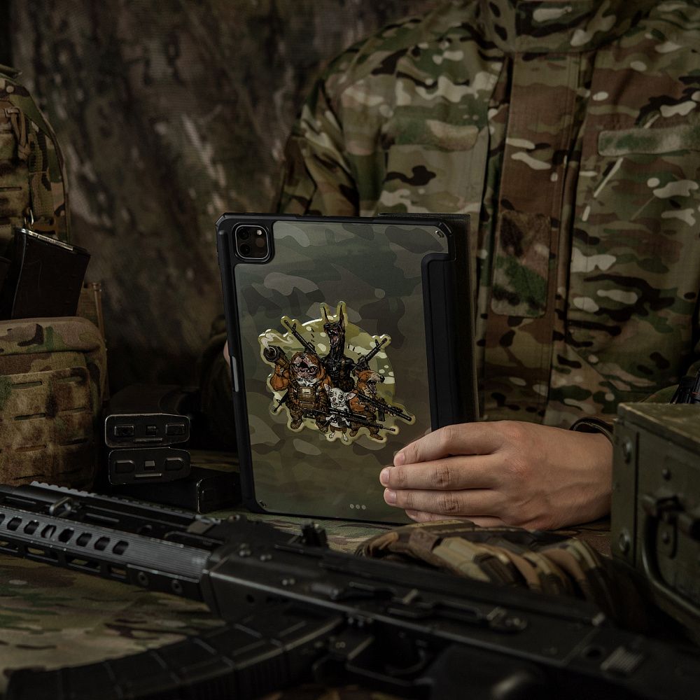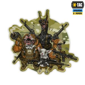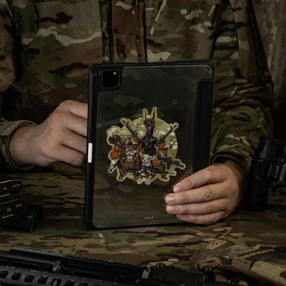 На наклейці зображена стрілецька “тіма” у розпалі бою (англ. fireteam - вогнева група, що зазвичай складається з чотирьох бійців). І хоч не кожен із зображених стрільців тримає удар однаково, з надійними побратимами навіть найважчий виклик для них стане пригодою!