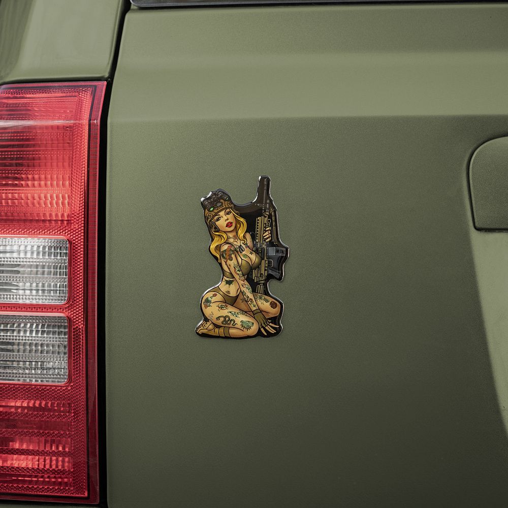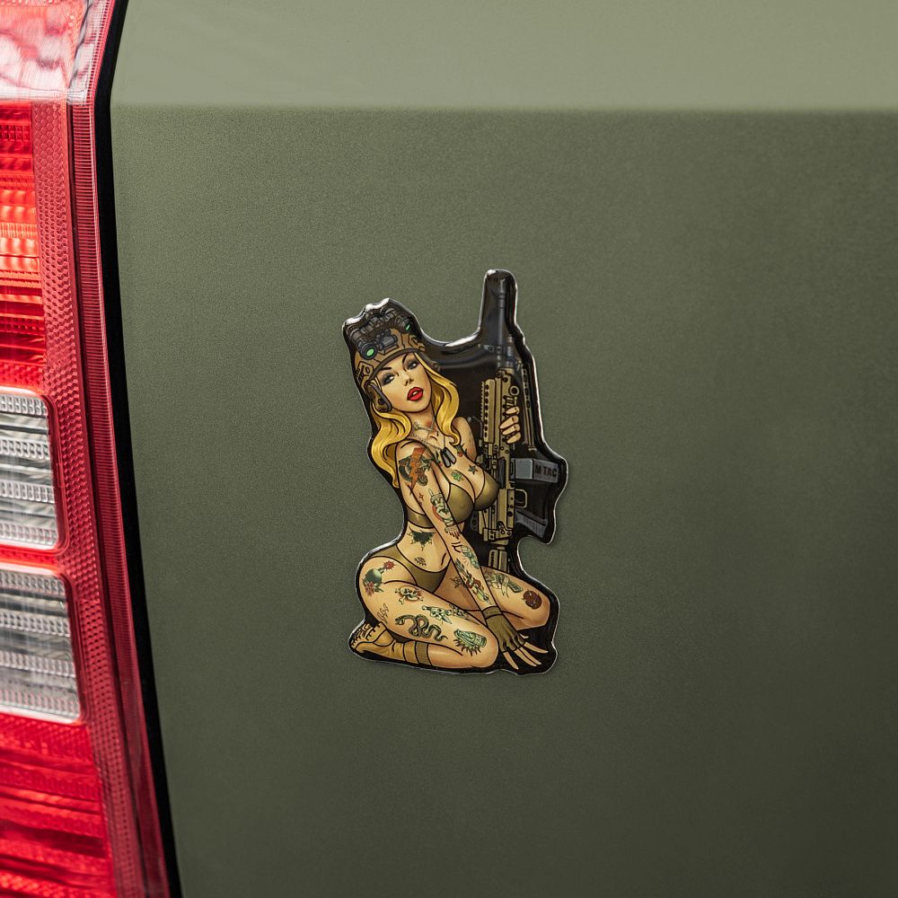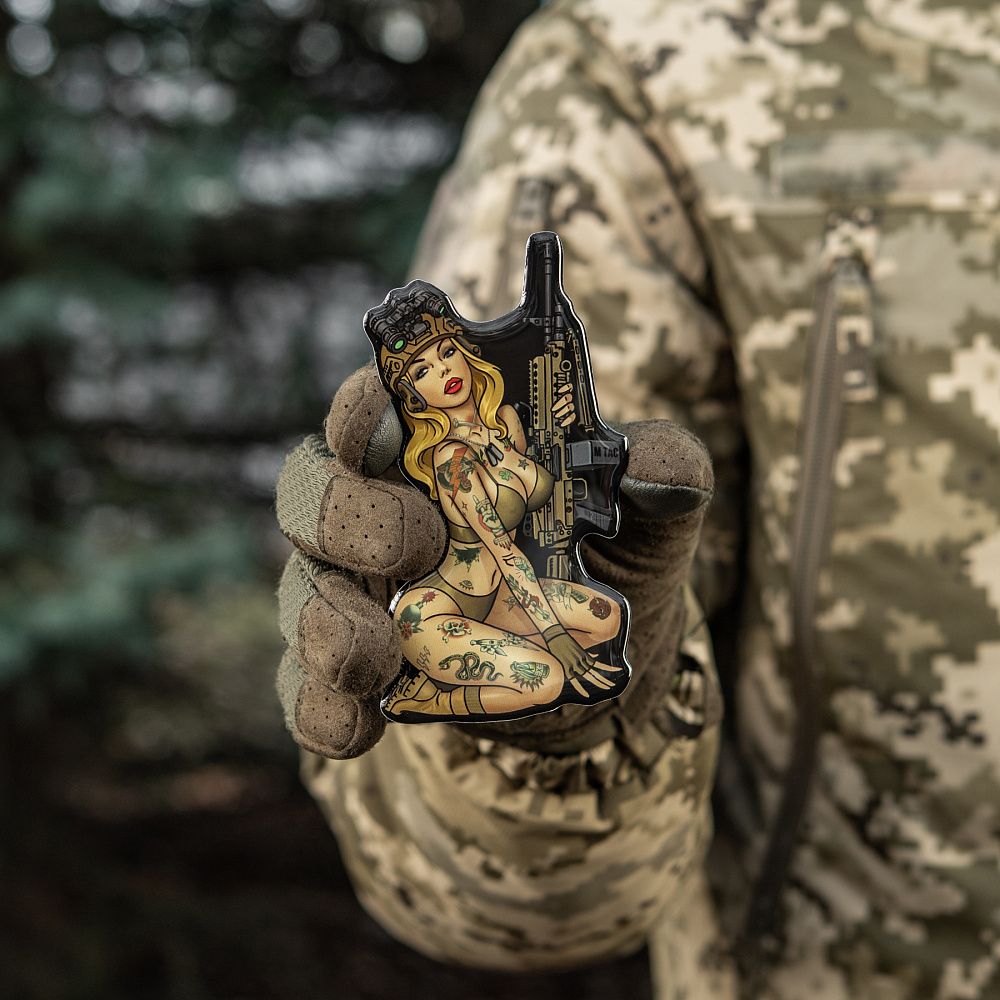 Особливої популярності даний вид мистецтва набув у часи Другої світової війни, коли американці з красунями на бортах воювали за демократію, відстоюючи цінності свободи й незалежності. Надихнувшись американською Pin-Up культурою часів Другої світової війни, бренд М-Тас продовжує лінійку Tactical Girl та презентує вам ще одну красуню, тепер у вигляді наклейки.